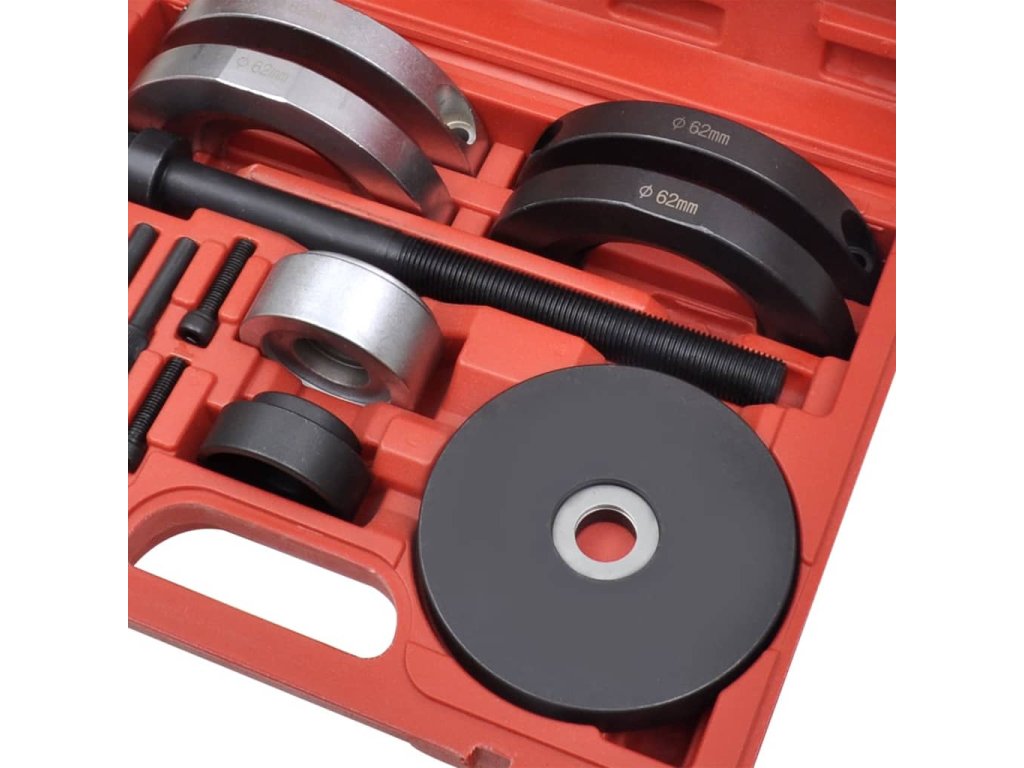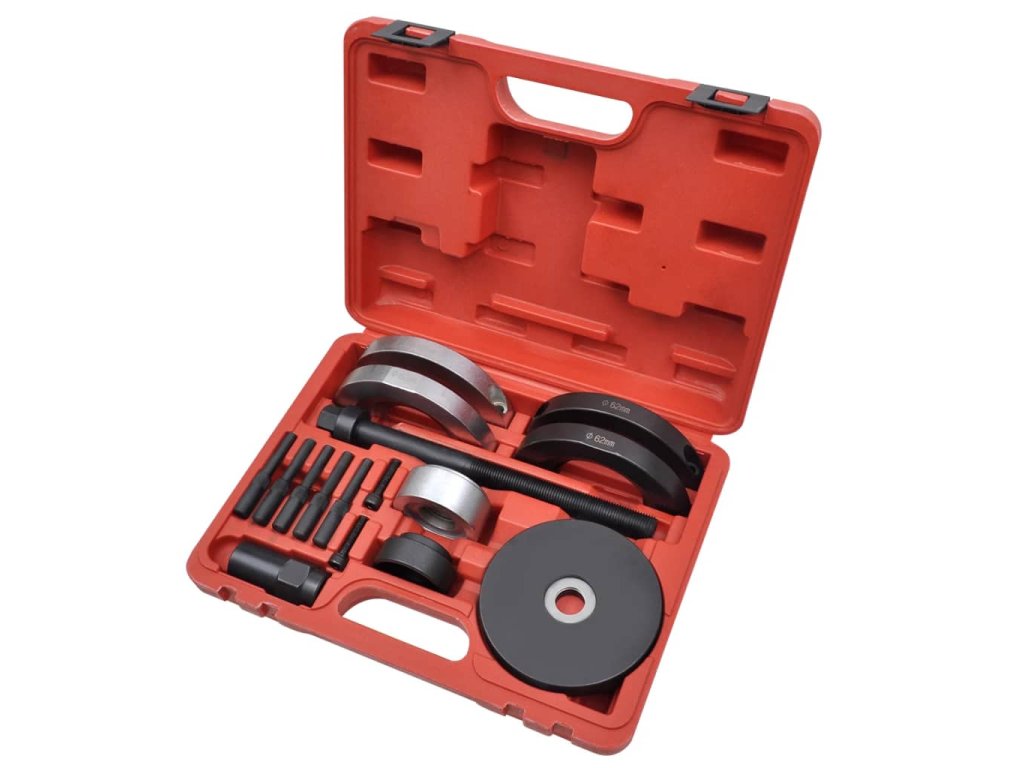 Táto sada náradia je určená na montáž a demontáž ložisiek a nábojov kolies. Je nevyhnutným pomocníkom v dieľňach ako pre profesionálov, tak aj pre entuziastov, a to vďaka svojej neopakovateľnej kvalite, obsiahlej funkcionalite a jednoduchému skladovaniu. Skutočný vrchol tejto sady je v tom, že umožňuje použitie v ťažšie dostupných miestach a to bez potreby odstraňovať ďalšie komponenty. Už len toto Vám ušetrí veľa času, vďaka čomu je táto sada nevyhnutnosťou pre každú garáž.