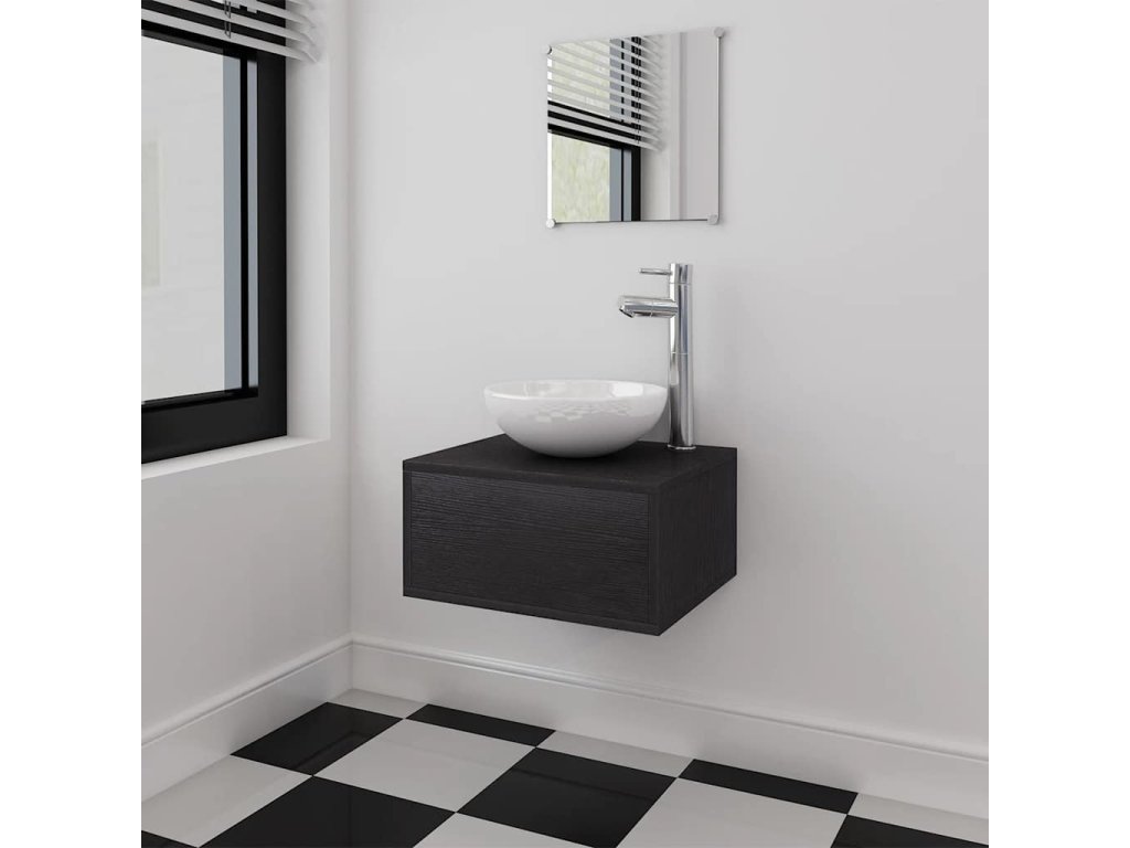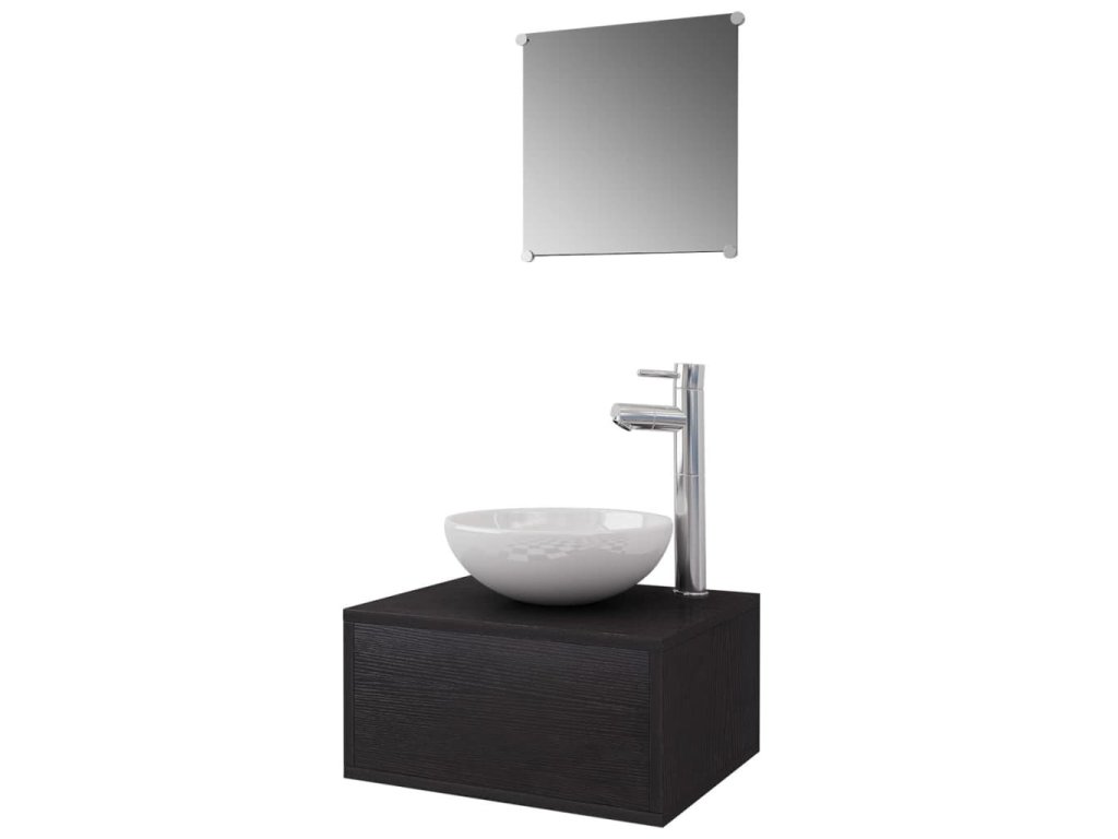 Táto kompletná sada pozostáva z 1 nástennej skrinky pod umývadlo, 1 zrkadla, 1 umývadla a 1 batérie a predstavuje skvelý spôsob, ako si zariadiť kúpeľňu a zároveň jej dodať štýlový vzhľad.