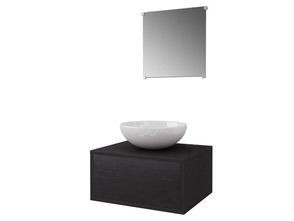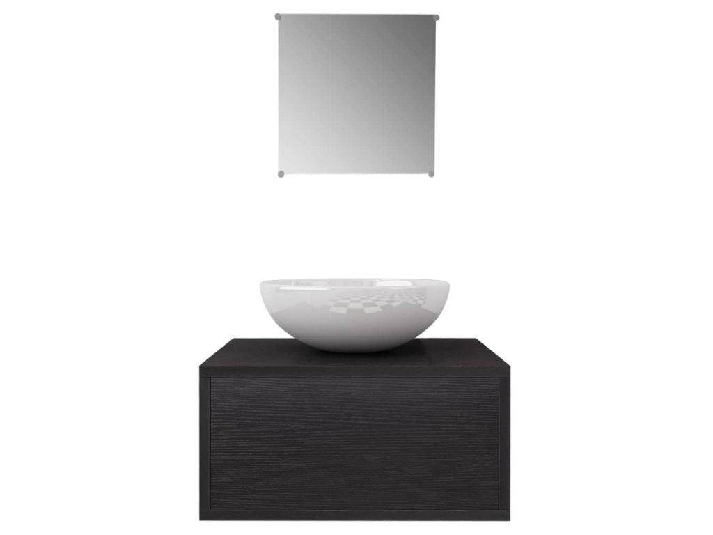 Sada kúpeľňového nábytku obsahuje zrkadlo a skrinku pod umývadlo, ktoré sa vďaka svojm kompaktným rozmerom a minimalistickému dizajnu zaručene stanú skvelým doplnkom do každej moderne zariadenej kúpeľne. Toaletná skrinka je vyrobená z kvalitnej drevotriesky, čo zaručuje jej pevnosť a trvácnosť.