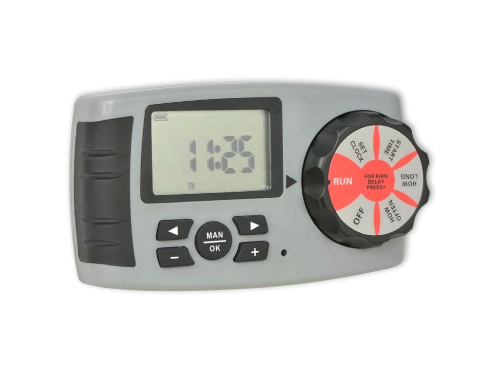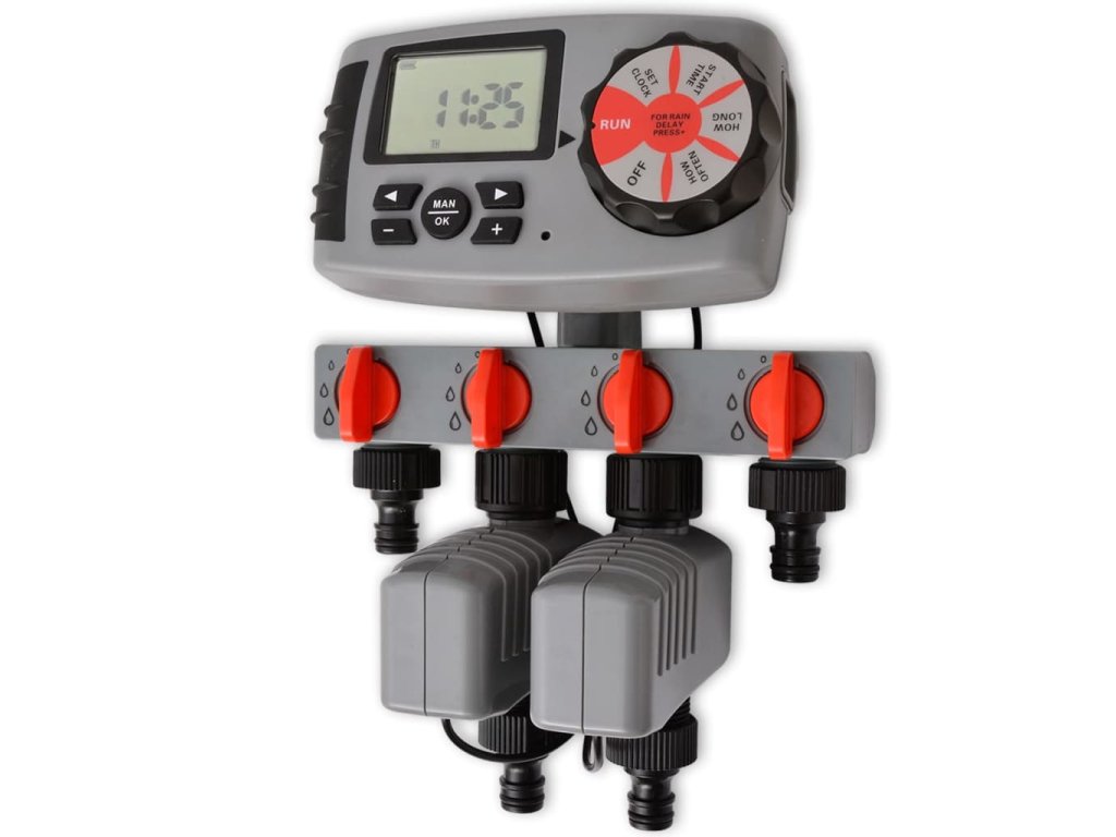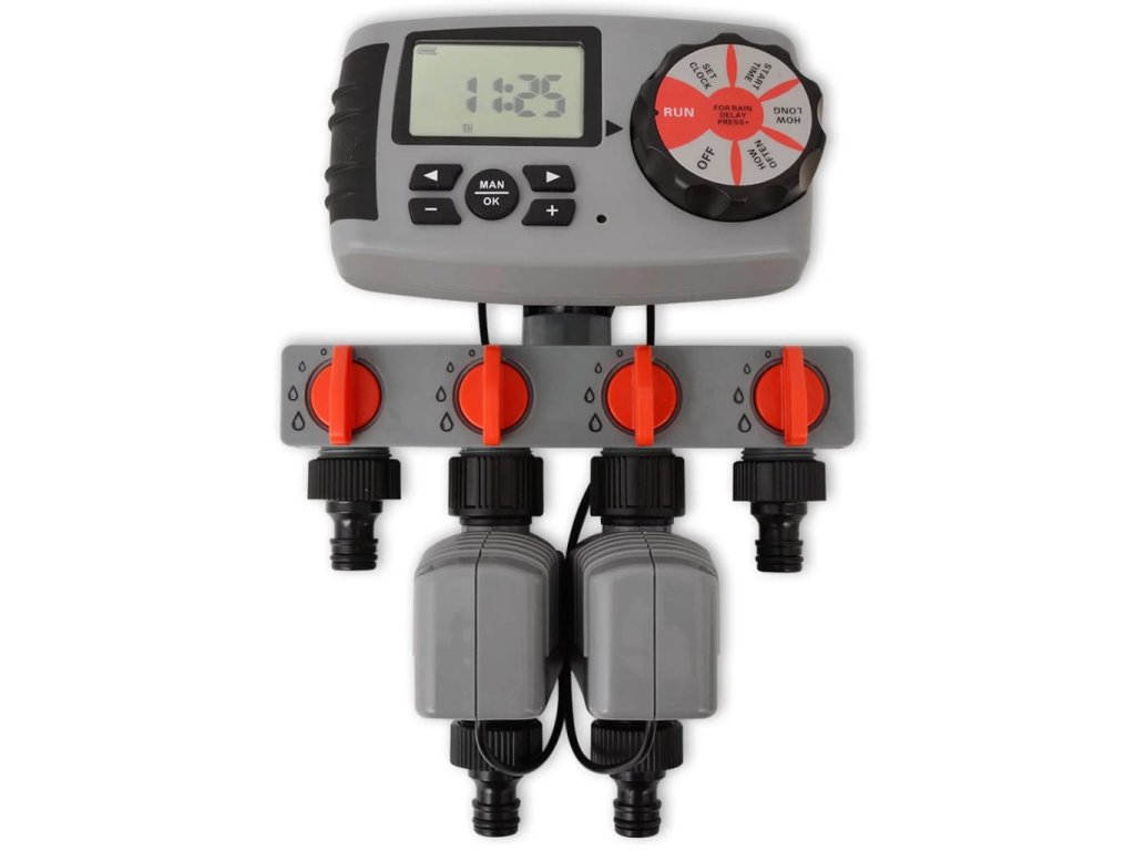 Tento automatický zavlažovací systém je navrhnutý tak, aby šetril vodu a čas. Obsahuje 4-cestný rozdeľovač vody, ktorý možno pripojiť k rôznym zavlažovacím zariadeniam. Elektronický časovač má číselník a tlačidlá pre programovanie a umožňuje vybrať aktuálny čas, čas spustenia zavlažovania, frekvenciu zavlažovania a trvanie zavlažovania pre každé pripojenie.
