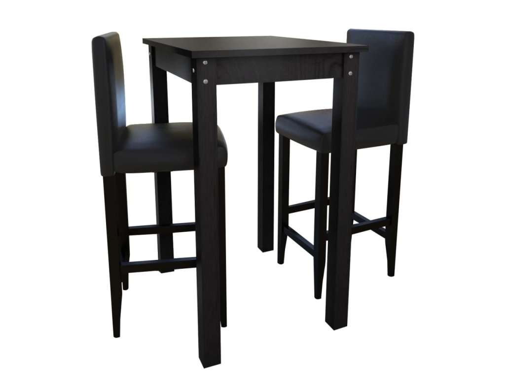 Súčasťou balenia sú barové stoličky v čiernom prevedení s klasickým dizajnom, ktorý doplní akékoľvek moderné domáce prostredie. Sedadlo a zadná opierka stoličky sú hrubo čalúnené pre zaistenie vášho pohodlia.Drevené nohy zaisťujú stabilitu a taktiež dodávajú celému kúsku eleganciu. Stolička je vyrobená z umelej kože, ktorá je trvácna a veľmi ľahko sa čistí.
