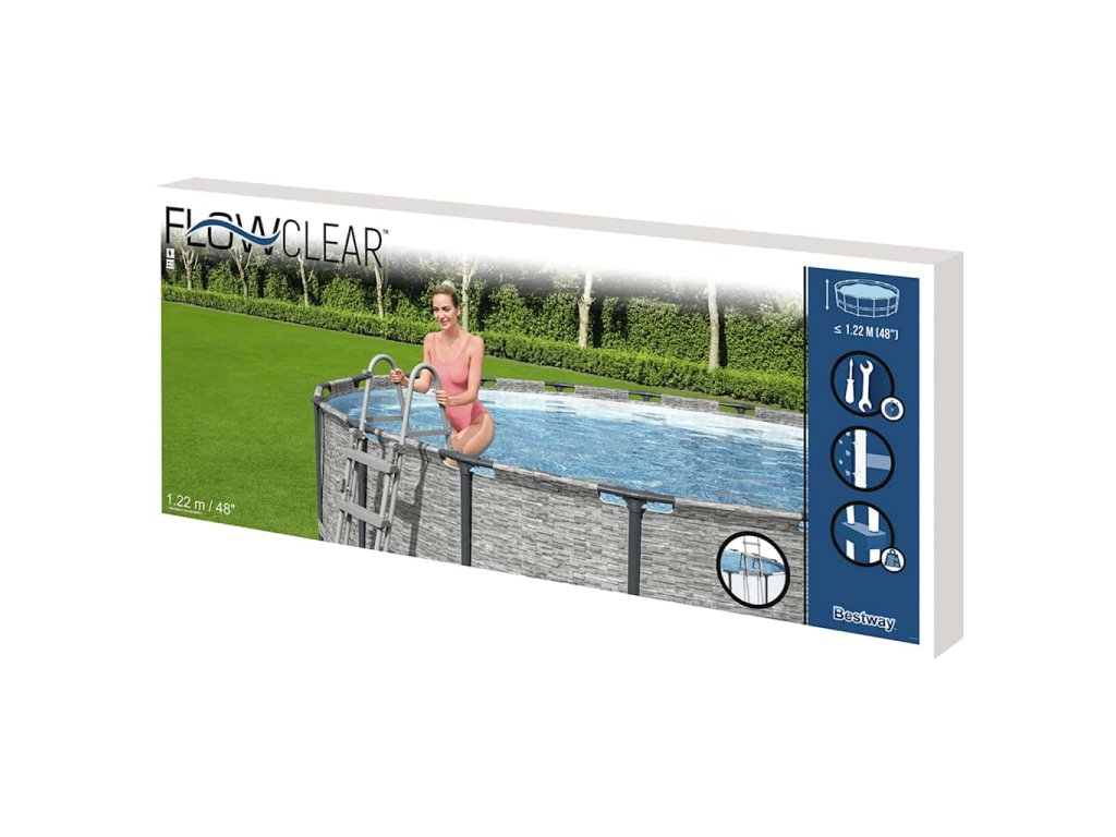 Bezpečnostný rebrík do bazéna je vhodný pre nadzemné bazény s maximálnou výškou 122 cm.