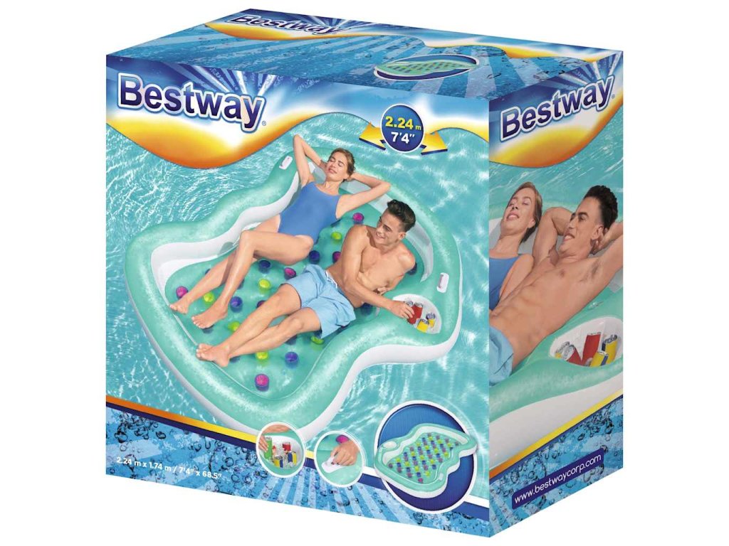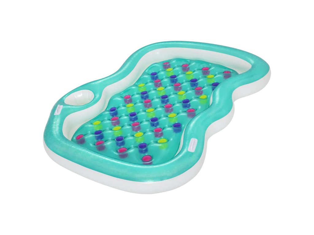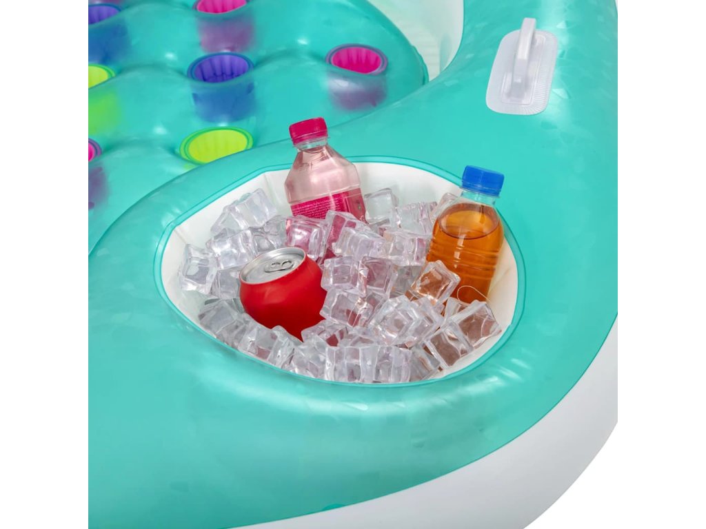 Plávajúca podložka je vyrobená z vysokokvalitného vinylu, je odolná a stabilná. Obsahuje dve vzduchové komory, ktoré sa dajú ľahko nafúknuť za pár minút. Je tiež vybavená priestranným držiakom na nápoje a občerstvenie.