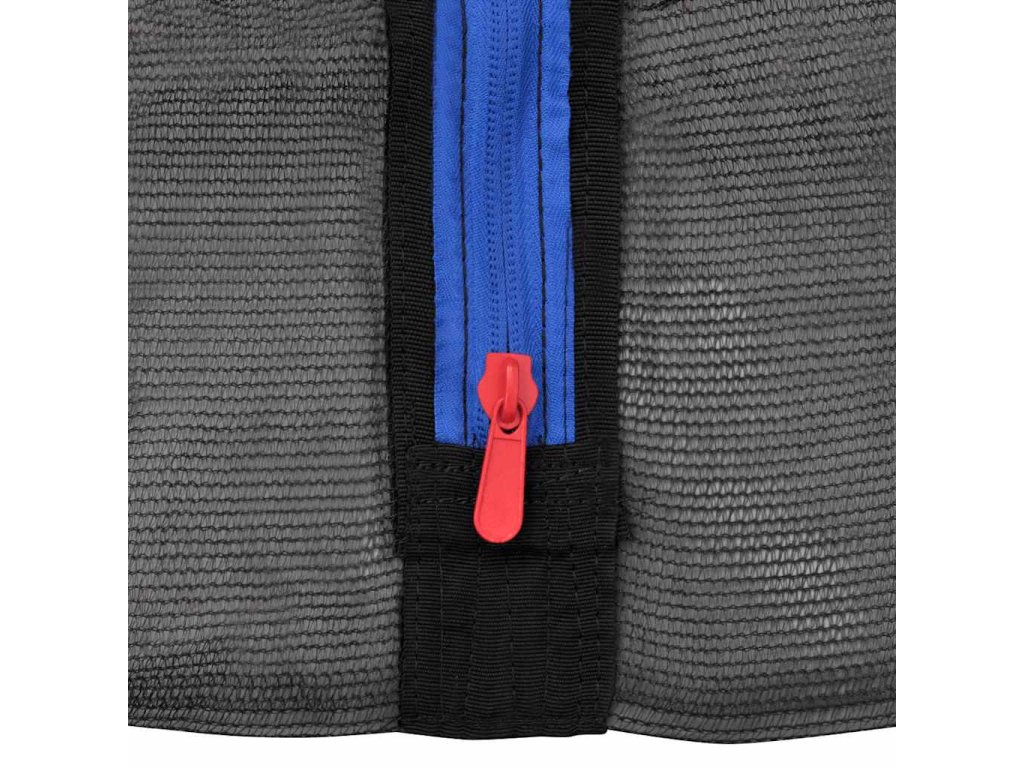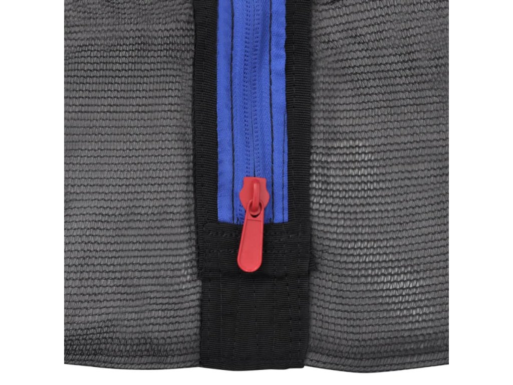 Vstupný otvor je vybavený vysokokvalitným zipsom, ktorý je pripevnený k jednému z 8 stĺpikov, vďaka čomu sa dá celá sieť jednoduchšie odzipsovať a zazipsovať. Vstupný systém so sponou dokonale zaručuje bezpečnosť vašich detí počas skákania na trampolíne. Náhradná bezpečnostná sieť je vhodná na trampolíny s priemerom 3,96 m, ktoré môžete nájsť v našom obchode (sku: 142094).