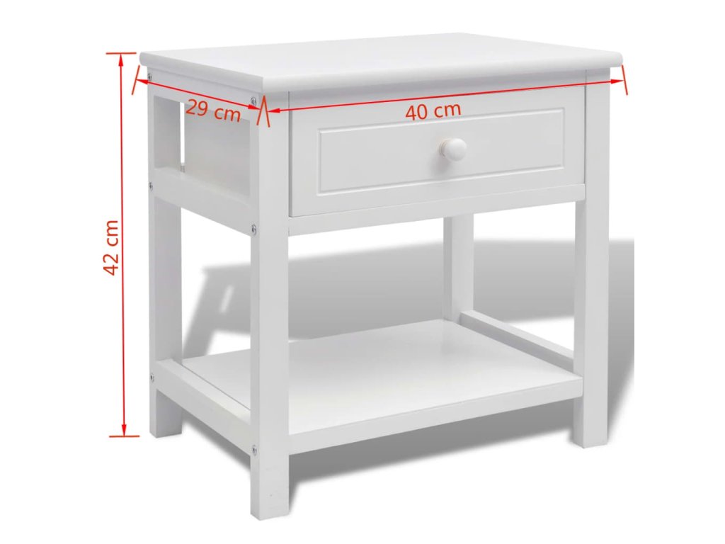 Tieto kompaktné skrinky sú vybavené zásuvkou, ktorá sa ľahko vysuvá a zasúva a poskytuje dostatok miesta na odkladanie drobností, ktoré chcete mať vždy poruke. Polička pod zásuvkou ponúka dodatočný úložný priestor. Stolíky sú vyrobené z materiálov prvotriednej kvality, vďaka čomu sú skutočne trvácne a ľahko sa čistia.