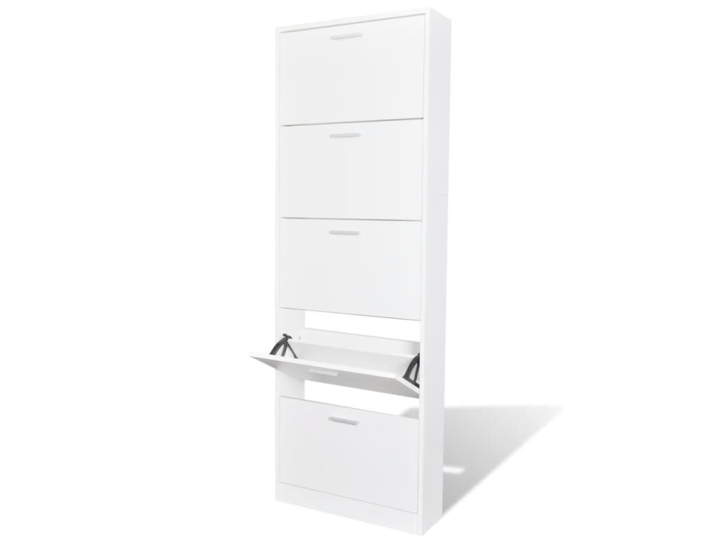 Tento drevený botník má 5 priehradiek a jednoduchý, avšak napriek tomu štýlový dizajn. Už viac nebudete mať topánky povaľujúce sa na podlahe.