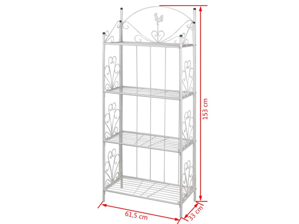 Tento bielz rastlinný regál, s kvetinovým vzorom, je ideálnou voľbou ked bude potrebné umiestniť vaše rastliny, ktoré budú upútať pozornosť v každej záhrade, terase alebo verande. Regál má výšku 153 cm,a 4 police. Vysoko kvalitná oceľ robí tento regál veľmi odolný, a lakovanie predlžuje jeho životnosť.