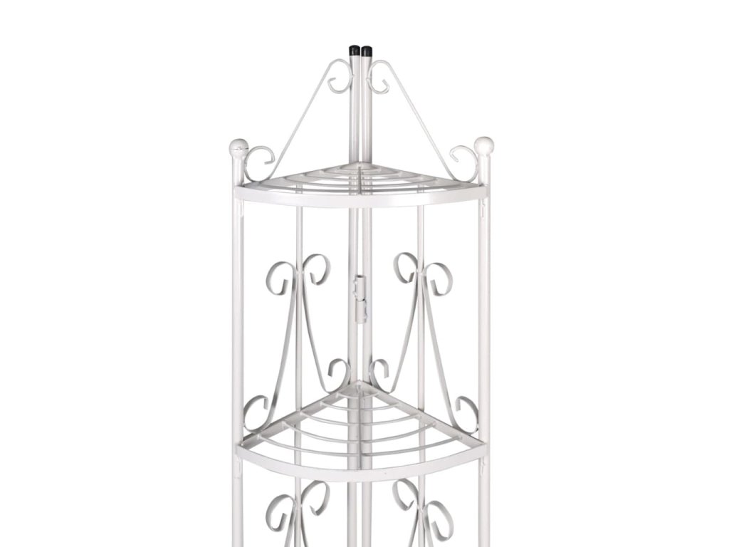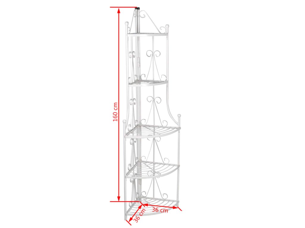 Tento biely rohový rastlinný regál, s kvetinovým vzorom, je ideálnou voľbou ked bude potrebné umiestniť vaše rastliny, ktoré budú upútať pozornosť v každej záhrade, terase alebo verande. Regál má výšku 160 cm,a 5 police, a ho môžete umiestniť do ktoréhokoľvek rohu. Vysoko kvalitná oceľ robí tento regál veľmi odolný, a lakovanie predlžuje jeho životnosť.