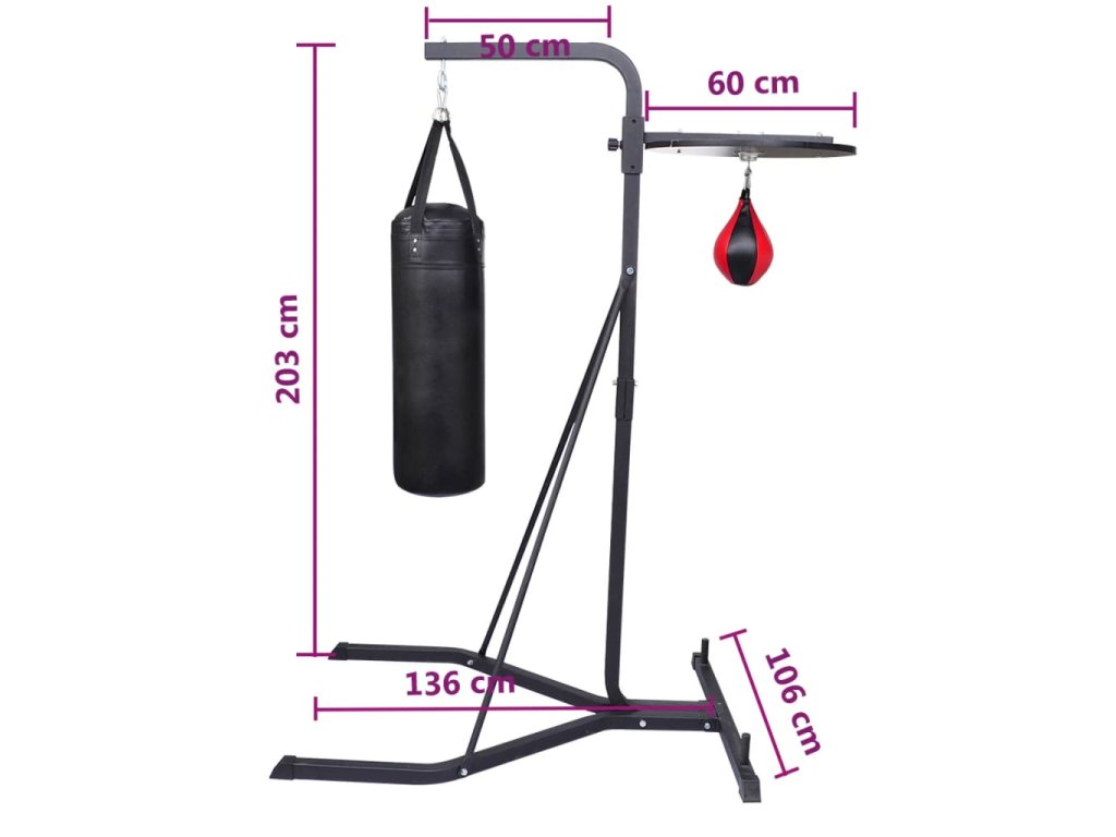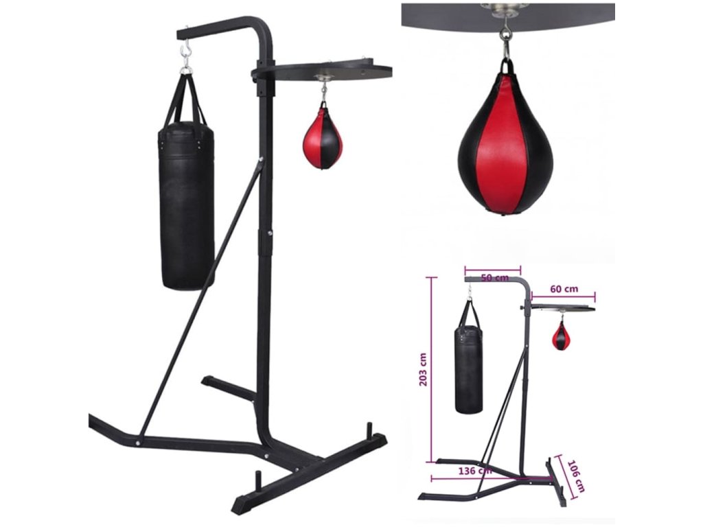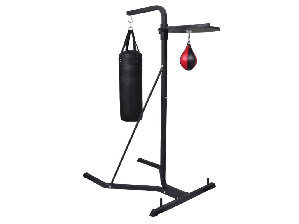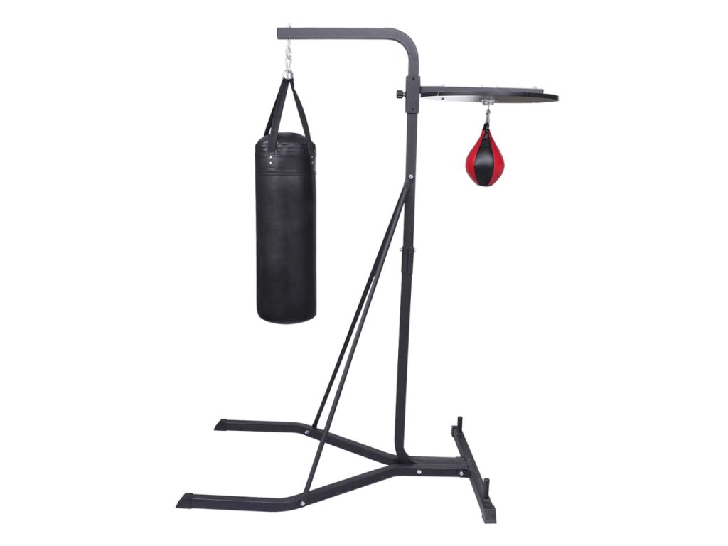 Tento stojan s 2 stranami zahŕňa držiak na boxovací vak a rýchloupínaciu dosku s hruškou, vďaka čomu je vhodný na tréningové účely.