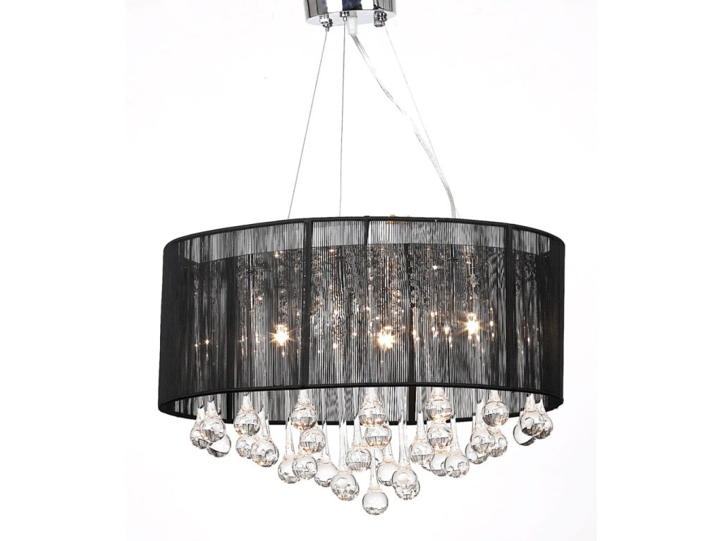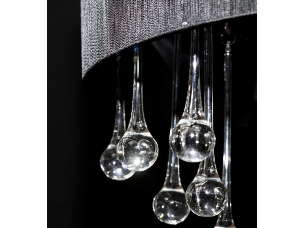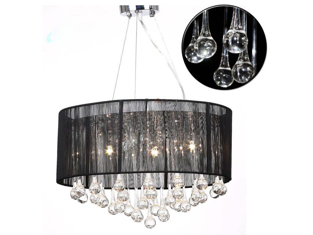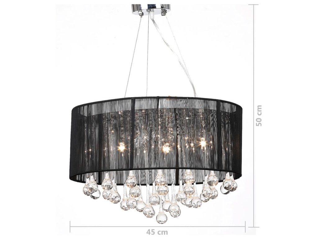 Tento nádherný luster s 85 rôznymi kryštálmi a tromi lampami je celý vyrobený z kovu a sklenených kryštálov (žiadne lacné plastové diely a kamene), ktoré vám poskytuju jedinečnú eleganciu. Luster má kovový kryt, ktorý je chrómovaný, luster je pokrytý priesvitným čiernym priadzovým tienidlom. Trendy prívesok má kráľovský kryštalový dizajn. Vysoko kvalitné číre sklo dáva skutočnú jasnosť vysokým svetlom ,v spektre bude nádherná hra farieb. Tento nádherný luster je fascinujúci svojimi tromi svetelnými zdrojmi a jeho leštenými hranolmi, ktoré vám poskytujú magickú iskru príjemného a teplého svetla. Upúta pozornosť v každom prostredí a je ideálny pre súkromné a priemyselné účely.
