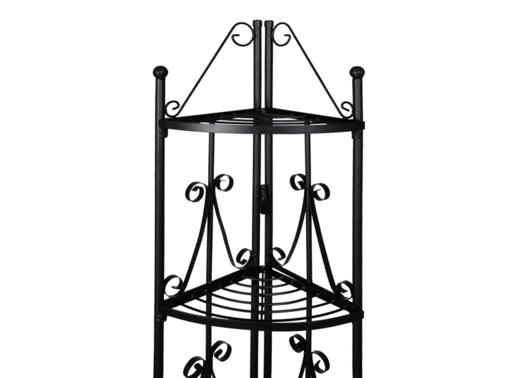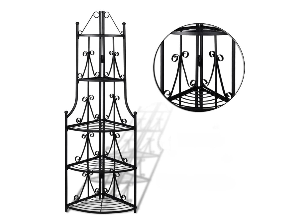 Tento čierny rohový rastlinný regál, s kvetinovým vzorom, je ideálnou voľbou ked bude potrebné umiestniť vaše rastliny, ktoré budú upútať pozornosť v každej záhrade, terase alebo verande. Regál má výšku 160 cm,a 5 police, a ho môžete umiestniť do ktoréhokoľvek rohu. Vysoko kvalitná oceľ robí tento regál veľmi odolný, a lakovanie predlžuje jeho životnosť.