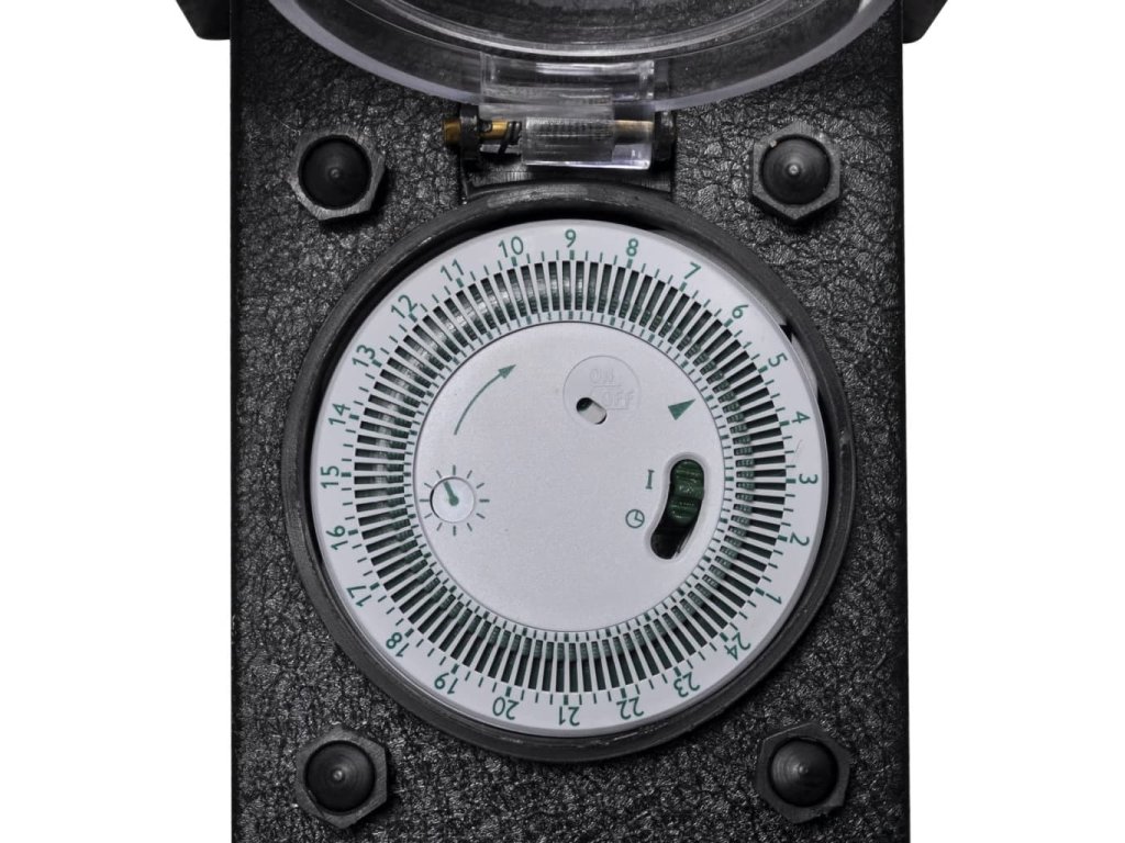 Mechanický časovač pripojené spotrebiče automaticky vypne. Zásuvky sú vybavené praktickými a bezpečnými ochrannými krytmi s pružinami.