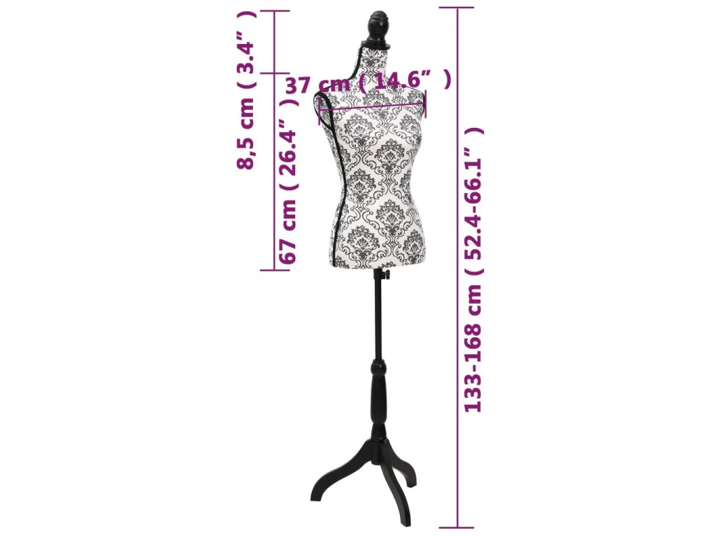 Výška dámskej figuríny sa dá nastaviť od 133 cm do 168 cm, aby ste si ju mohli podľa potreby prispôsobiť na rôzne účely. Trup busty je vyrobený zo 100% polyesteru, a tak do neho môžete zapichovať špendlíky.