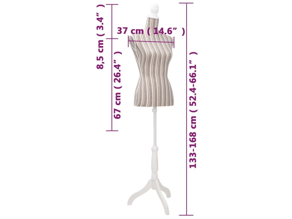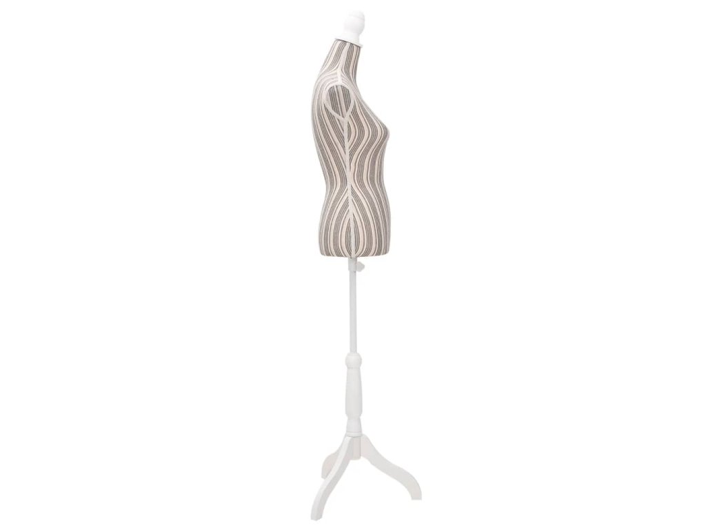 Výška dámskej figuríny sa dá nastaviť od 133 cm do 168 cm, aby ste si ju mohli podľa potreby prispôsobiť na rôzne účely. Trup busty je vyrobený zo 100% polyesteru, a tak do neho môžete zapichovať špendlíky. Táto aranžérska busta pozostáva z trupu a dodáva sa spolu so trojnožkou, hlavicou a tyčou.