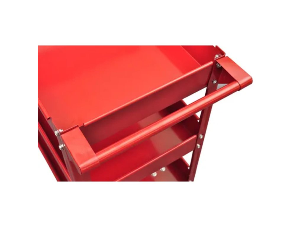 Tento dielenský vozík pre nástroje má robustnú konštrukciu s 3 policami ktoré majú maximálnu únosnosť 100 kg.Tento vozík možno využiť pre jednoduché a bezpečné skladovanie a prenášanie svojich nástrojov v garáži alebo dielni. Má lakovanú oceľovú konštrukciu, 4 kolesá, a vhodnú rukoväť pre manipuláciu vozíka.