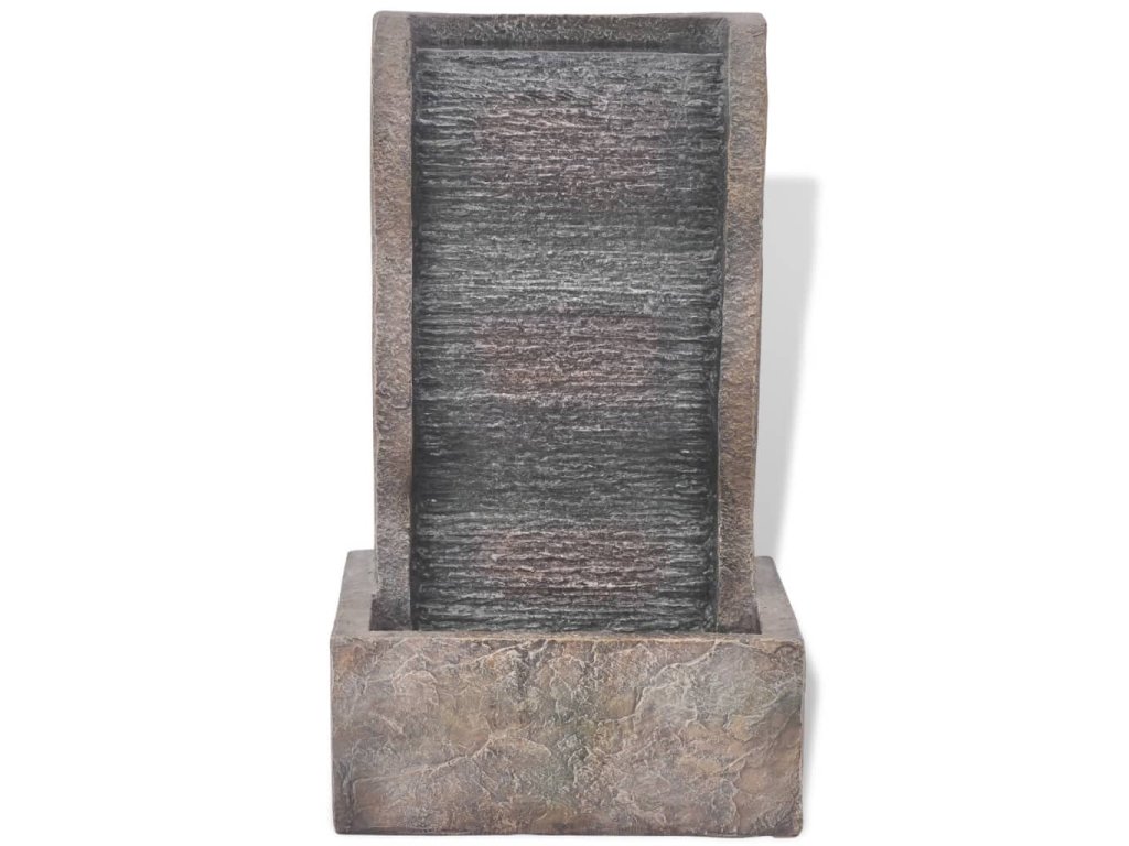 Fontánka so stekajúcou vodou sa bude hodiť do akéhokoľvek štýlu bývania. Je osvetlená LED diódami, a tak vytvorí úžasný vizuálny efekt, a to najmä v noci. Fontánka je vyrobená z polyresinu (trvdenej živice), vďaka čomu odoláva UV žiareniu, takže bude stále vyzerať pekne, pretože si zachová svoju farbu, aj keď ju umiestnite na priame slnečné svetlo. Niekoľko stekajúcich pramienkov a upokojujúci zvuk žblnkajúcej vody v miestnosti navodia relaxačnú a meditačnú atmosféru. Súčasťou balenia je aj kvalitné čerpadlo, ktoré sa postará o bezpečný a spoľahlivý chod fontánky.