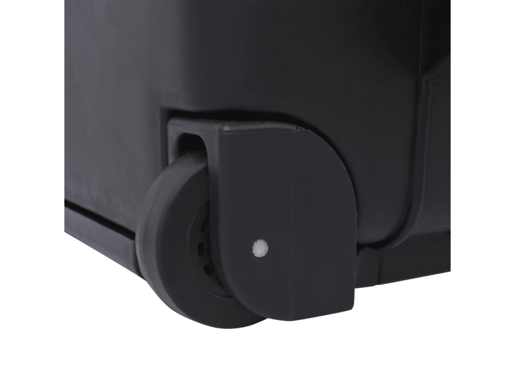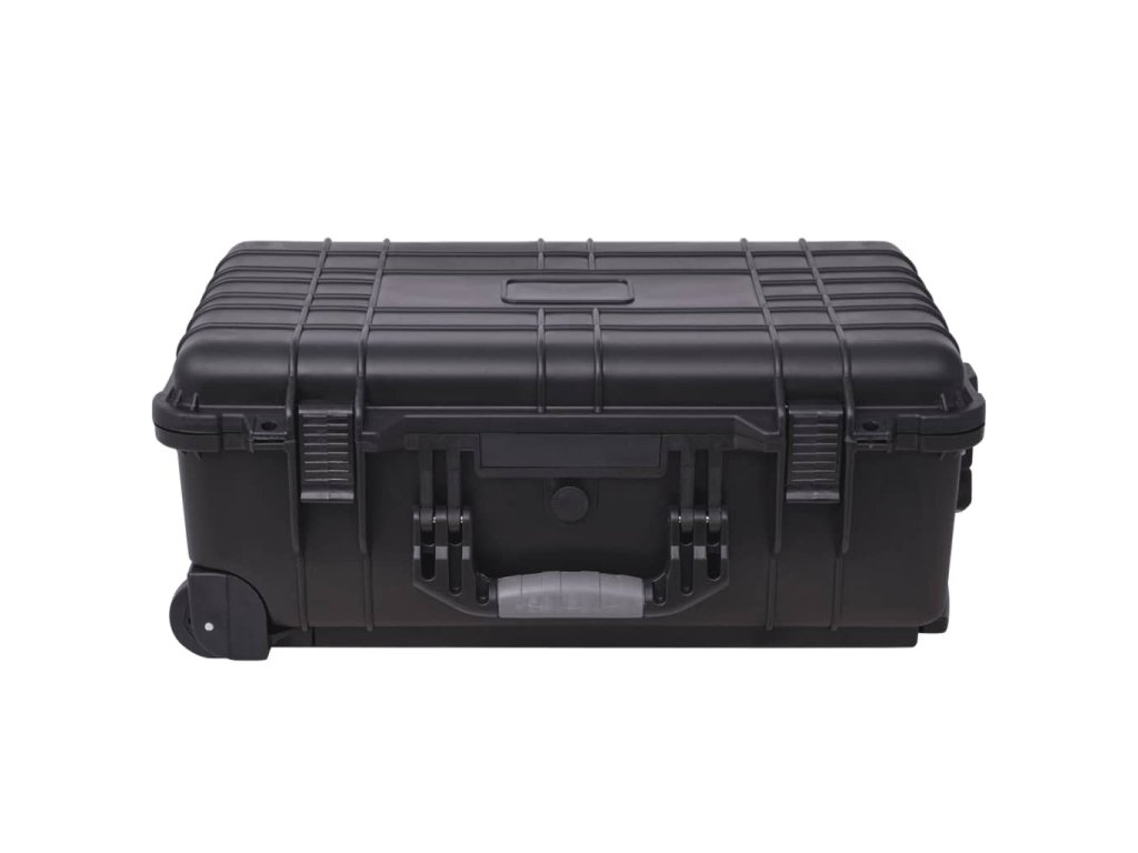 Kufor na náradie je vybavený dvoma kolieskami a nastaviteľnou teleskopickou rukoväťou, ktorá vám umožní jednoduchú prepravu kufra na cestách. Atraktívna čierna povrchová úprava je dostatočné odolná a trvácna. Kufor sa dá uzamknúť 2 visiacimi zámkami pre maximálnu bezpečnosť (zámky nie sú súčasťou balenia).