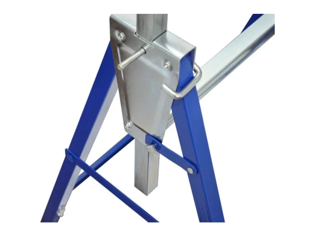 Tieto 2 lešenárske kozy majú rámy, ktoré sú výškovo nastaviteľné 81 až 130 cm. Tieto 2 lešenia kozy majú rámy, ktoré sú výškovo nastaviteľné 81 až 130 cm. Tieto lešenia sú prenosné a sa daju rýchlo zložiť. Môžete pracovať bezpečne s pripojenými priečnych stužidiel. Sklonená strana vám zabráni pádu na miesto na ktorom pracujete. Tieto lešenia majú nosnosť až 150 kg. Majú pevnú oceľovú konštrukciu, majú tiež bezpečnostný zámok s protišmykovou ochranou pre vašu bezpečnosť.Stojan je určený pre použitie ako pracovná lavica vo vnútornom alebo vonkajšom prostredí. Dôležitá poznámka: Nevstúpajte na kozy!