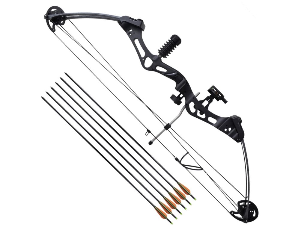 - Kompletná sada: V balení sa nachádza kladkový luk, základka na šípy, stabilizátor, zameriavač a 6 x 30" sklolaminátové šípy.