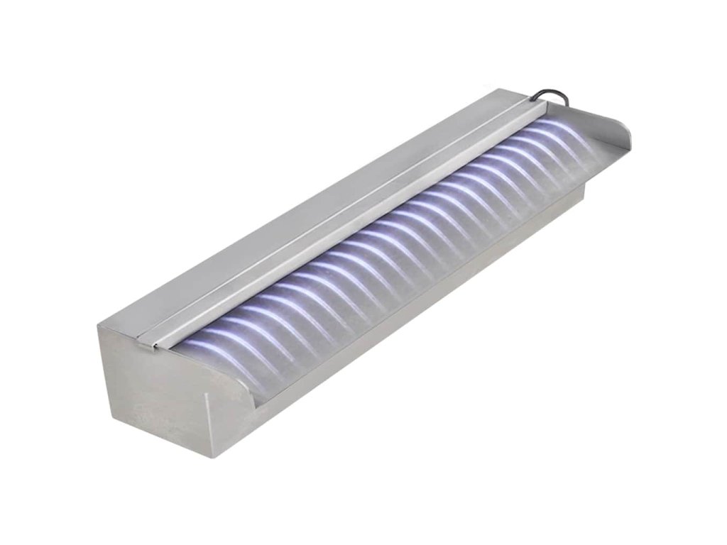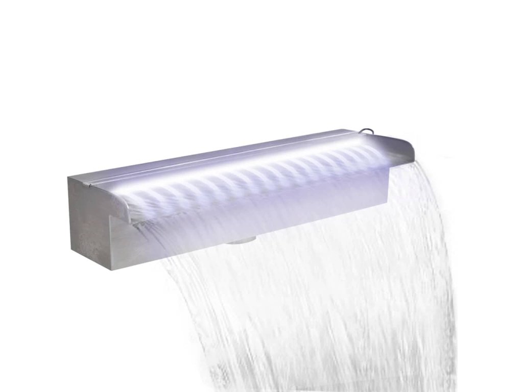Jej špeciálny dizajn umožňuje konštantný a rovnomerný prúd vody. Je vyrobená z kvalitnej nehrdzavejúcej ocele, ktorá je odolná voči poškodeniu chlórovanou vodou, vďaka čomu vám fontána vydrží veľmi dlho. Vodopád má zabudované LED svetielka so zástrčkou, ktorá je súčasťou balenia. Montáž fontány je pomerne jednoduchá.