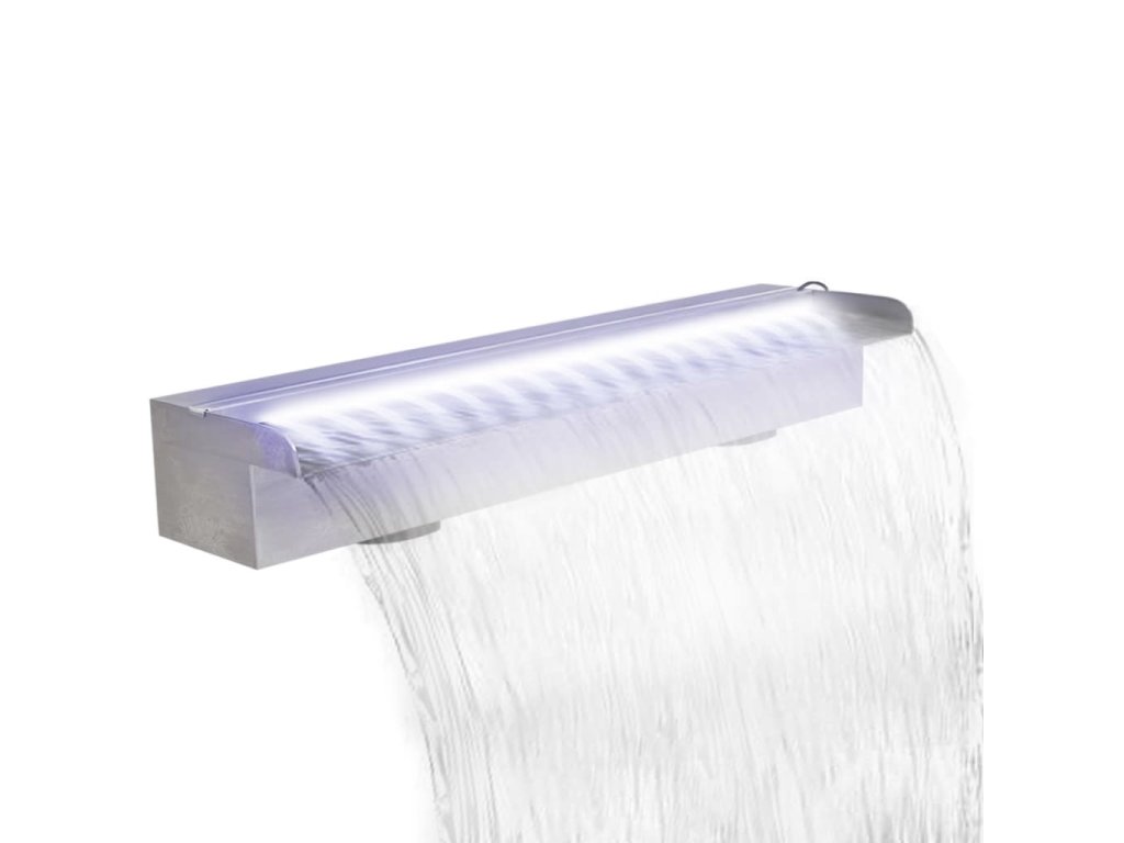 Jej špeciálny dizajn umožňuje konštantný a rovnomerný prúd vody. Je vyrobená z kvalitnej nehrdzavejúcej ocele, ktorá je odolná voči poškodeniu chlórovanou vodou, vďaka čomu vám fontána vydrží veľmi dlho. Vodopád má zabudované LED svetielka so zástrčkou, ktorá je súčasťou balenia. Montáž fontány je pomerne jednoduchá.