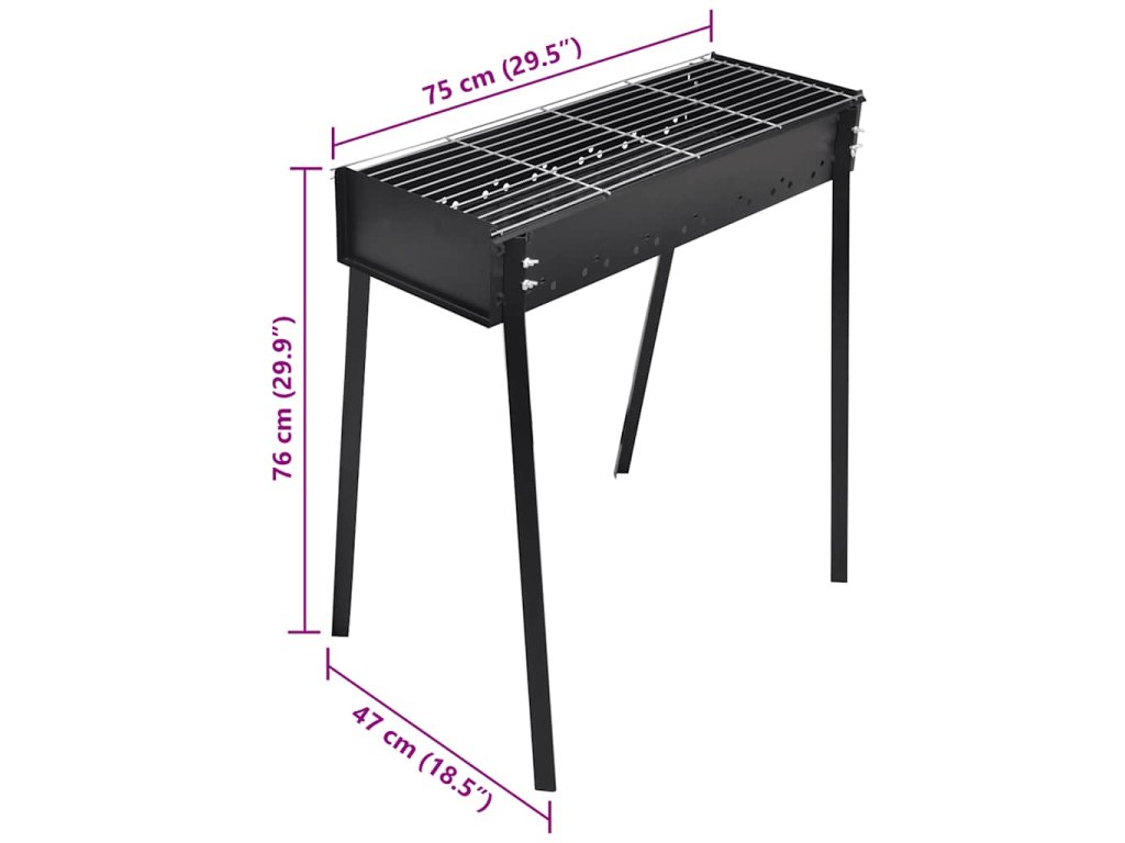 Tento klasický gril na drevené uhlie má vysoko kvalitne vyrobenú konštrukciu z robustnej a odolnej ocele, a je ideálny pre piknik v prírode, večierky, kempovania, a výlety, atď S rozmermi grilovacej dosky 75 x 28 cm, poskytuje pomerne veľký priestor pre umiestnenie jedla, takže je ideálny pre niekoľko osôb na použitie v tom istom čase.
