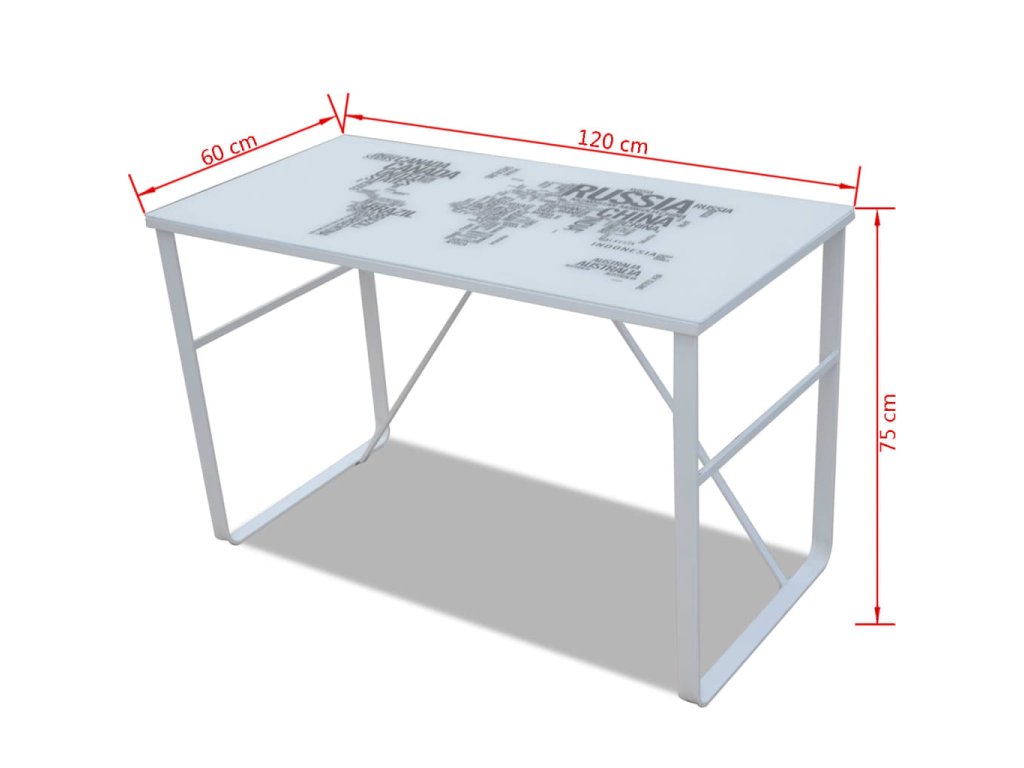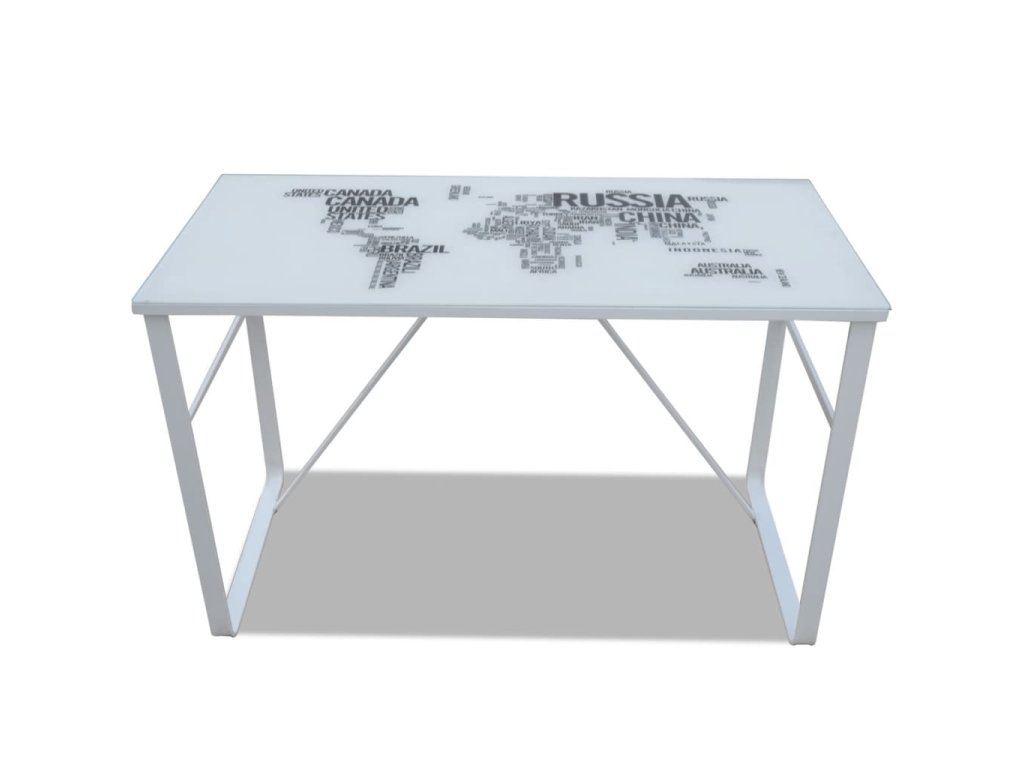 Vrchná doska s unikátnou potlačou mapy pôsobí vzhľadne a zaujímavo, a tak dodá vášmu interiéru nádych štýlu a spríjemní bežný deň v práci. Povrch stola tvorí hladké tvrdené sklo, ktoré sa dá jednoducho očistiť pomocou navlhčenej handričky.