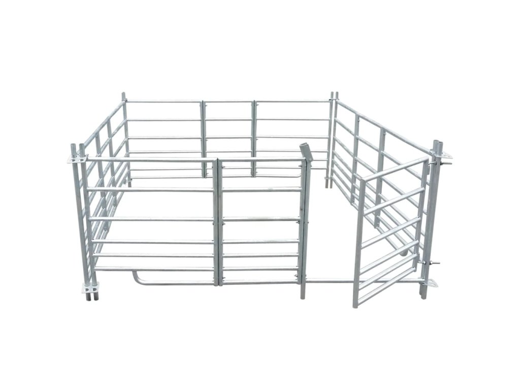 Klietka pozostáva zo 4 pevných panelov z pozinkovanej ocele, takže je bezpečná, stabilná a veľmi trvácna. Kompaktné oceľové tyče sú bezpečne vytvarované a zvarené tak, aby sa cez ne ovce nedostali von. Ohrada pre ovce má okrem toho aj praktické dvierka, ktoré sa dajú jednoducho zavrieť a zamknúť.
