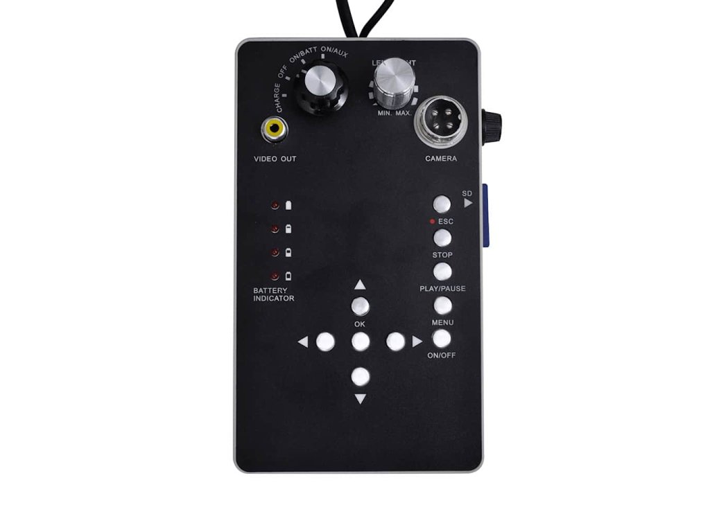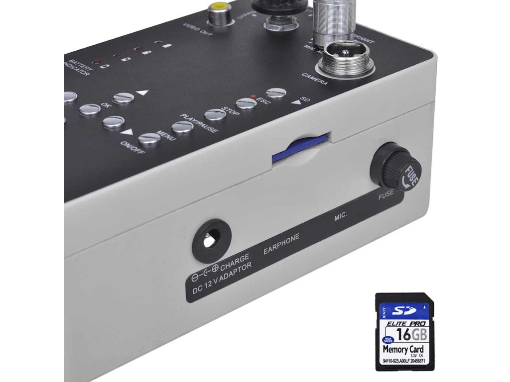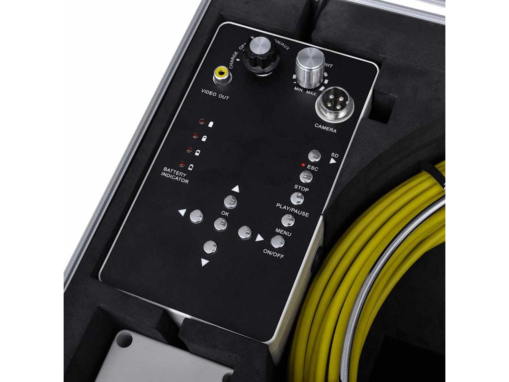Keď pripojíte kameru ku káblu na navijaku, kábel sa bude postupne odvíjať, aby ste mohli dosiahnuť požadovanú hĺbku alebo vzdialenosť. Pripojený valec chráni kameru pred vážnym poškodením a postará sa o to, aby sa kamera pohybovala plynule. Obraz uvidíte na farebnom monitore s tlačidlom menu/diaľkovým ovládaním, pomocou ktorých môžete upraviť obraz a nastaviť zobrazenie. Kamera je navyše vybavená zabudovanými LED diódami, vďaka ktorým budete môcť vykonávať inšpekciu aj na tmavých miestach.