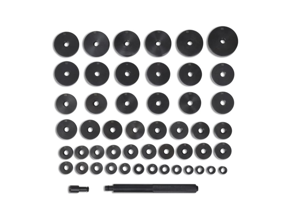- 48 x platnička s vonkajším priemerom od 18 do 65 mm (1 mm odstupňovanie): 18, 19, 20, 21, 22, 23, 24, 25, 26, 27, 28, 29, 30, 31, 32, 33, 34, 35, 36, 37, 38, 39, 40 , 41, 42, 43, 44, 45, 46, 47, 48, 49, 50, 51, 52, 53, 54, 55, 56, 57, 58, 59, 60, 61, 62, 63, 64 a 65 mm. Všetky platničky majú výšku 12,4 mm, priemer diery 12,2 mm.