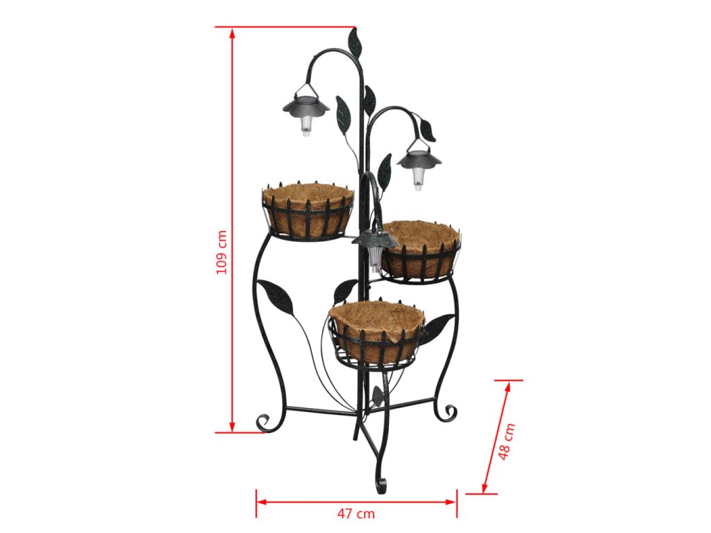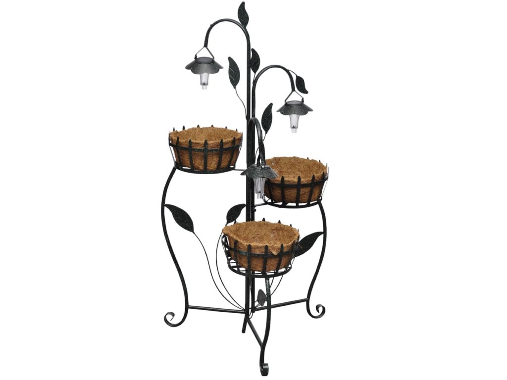 Tieto 3 rastlinné koše s 3 LED svetlami budu krásne zdobiť vaše záhrady, balkóny, terasy atď. Koše sú vyrobené z kokosových vlákien, tento materiál môže byť tiež odstránený. Kostra je vyrobená z liatiny. Budete mať možnosť zasadiť vaše rastliny z výberu priamo do závesných košíkov. LED svetlá fungujú na solárnu energiu a osvetľuju v teplej, ale svetlej farbe. Solárny panel nabíja akumulátor. Má tiež senzor súmraku, takže keď príde večer, svetlá sa automaticky aktivuju. Neprekážaju káble s integrovaným solárnym článkom.