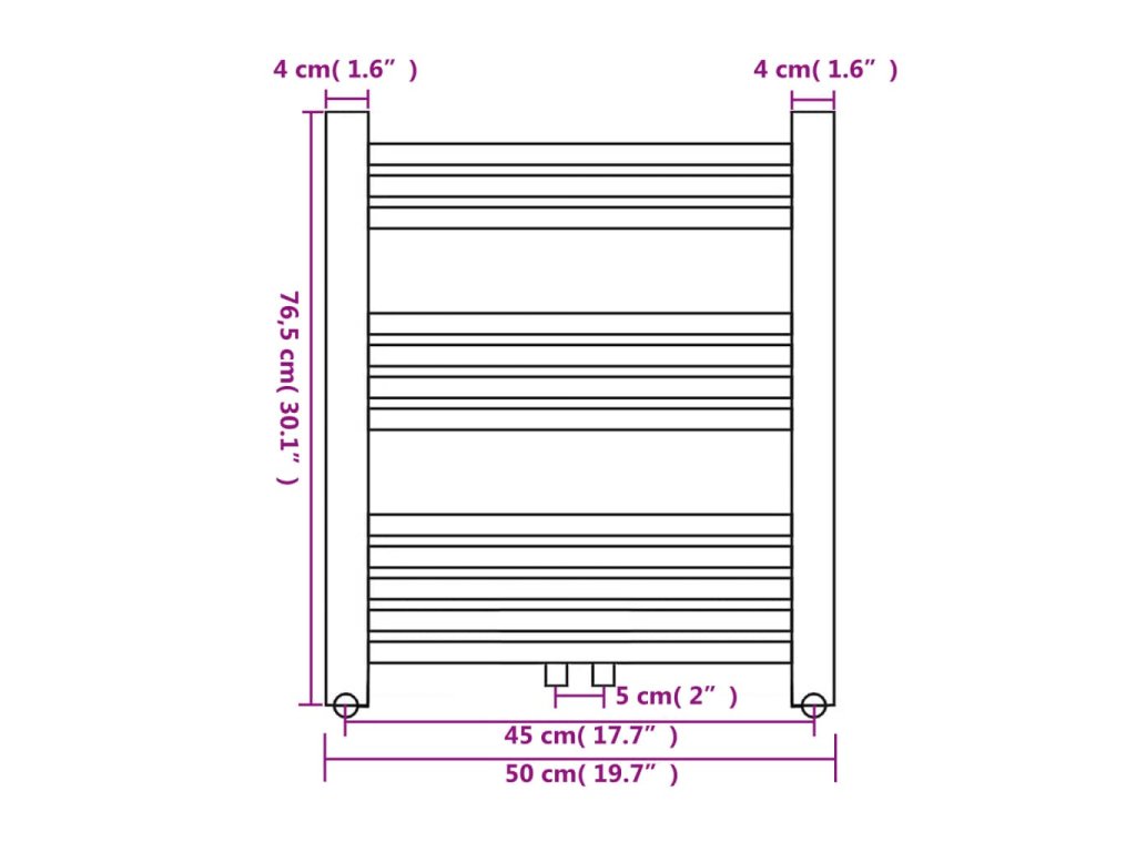 Vďaka cirkulačnému systému, ktorý na vykurovanie využíva prúdenie horúcej vody, budú vaše uteráky vysušené za neuveriteľne krátky čas a nebude vás to stáť žiadne náklady na elektrinu. Radiátor pozostáva z 12 oceľových priečnych trúbok s priemerom 22 mm a s bielym náterom. Tieto priečne trúbky sú extra hrubé, vďaka čomu poskytujú vysoký tepelný výdaj. V hornej a spodnej časti sa nachádzajú prípojky, ktoré zabezpečujú optimálny prúd vody.