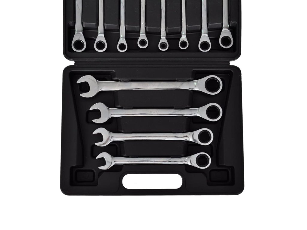 Tieto kľúče majú povrch leštený chrómom pre maximálnu ochranu proti hrdze a korózii. Všetky sú dodávané v pevnom prenosnom kufríku pre ľahkú prepravu.