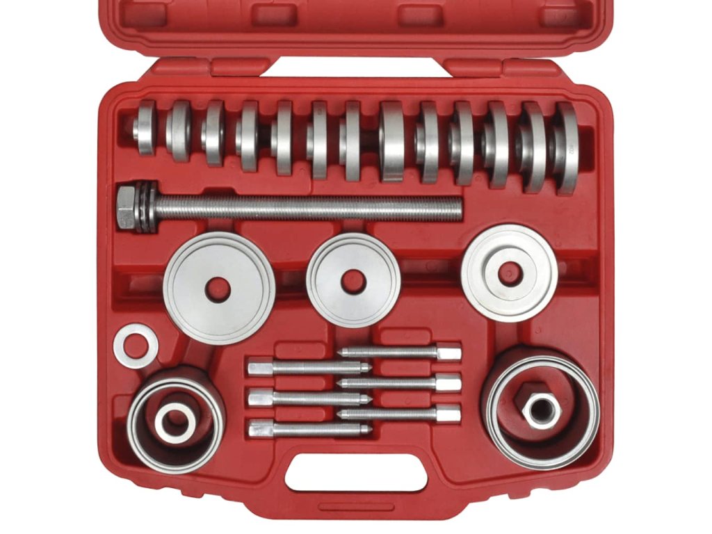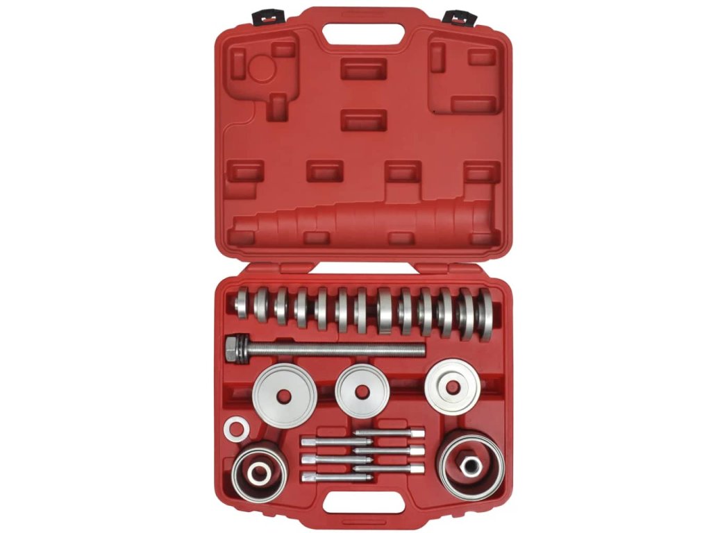 Táto sada náradia na montáž a demontáž ložísk predstavuje skvelého pomocníka, ktorý poslúži na rýchle a efektívne nasadzovanie a sťahovanie ložísk na vozidlách s predným náhonom. S touto sadou bude výmena ložísk skutočne jednoduchá, pretože nebude potrebné demontovať otočný čap riadenia ani tlmič.