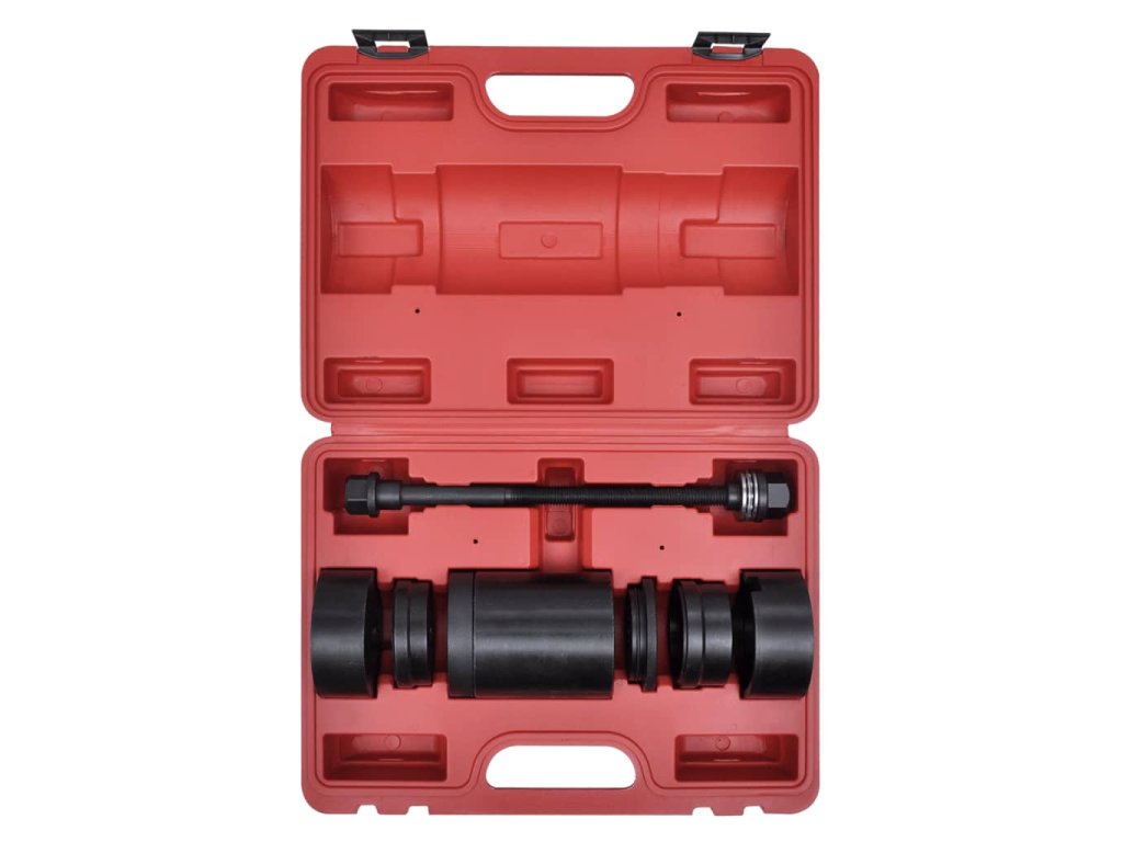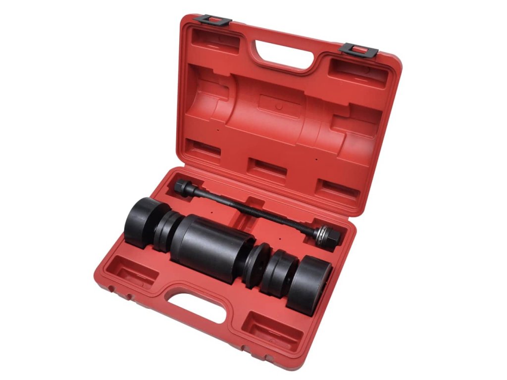 Táto súhrnná sada nástrojov bude ideálna pre montáž a demontáž objímky nápravnice v istých modeloch Mercedes Benz. Jemné závitové a tlakové ložisko umožňuje, aby bola objímka presne na mieste a bez starostí, vďaka čoma sa ovláda skutočne bezpečne. Je ideálna na výmenu objímky nápravnice pokým je stále súčasťou vozidla a bez toho, aby musela byť odmontovaná úplná zadná náprava.