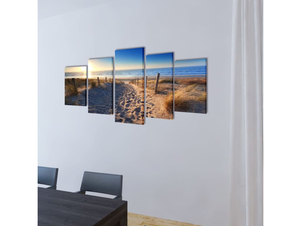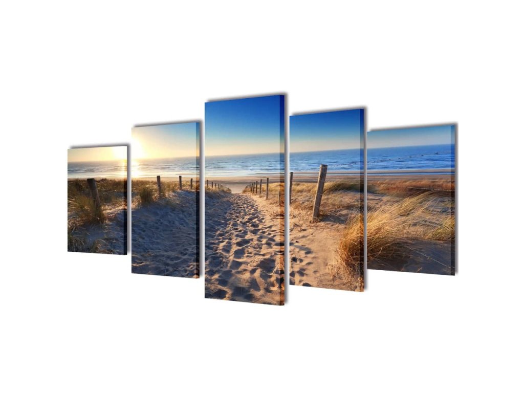 Plátno prvotriednej kvality je vodovzdorné a dá sa jednoducho vyčistiť. Sada obrazov s motívom piesočnatej pláže pôsobí naozaj exoticky.