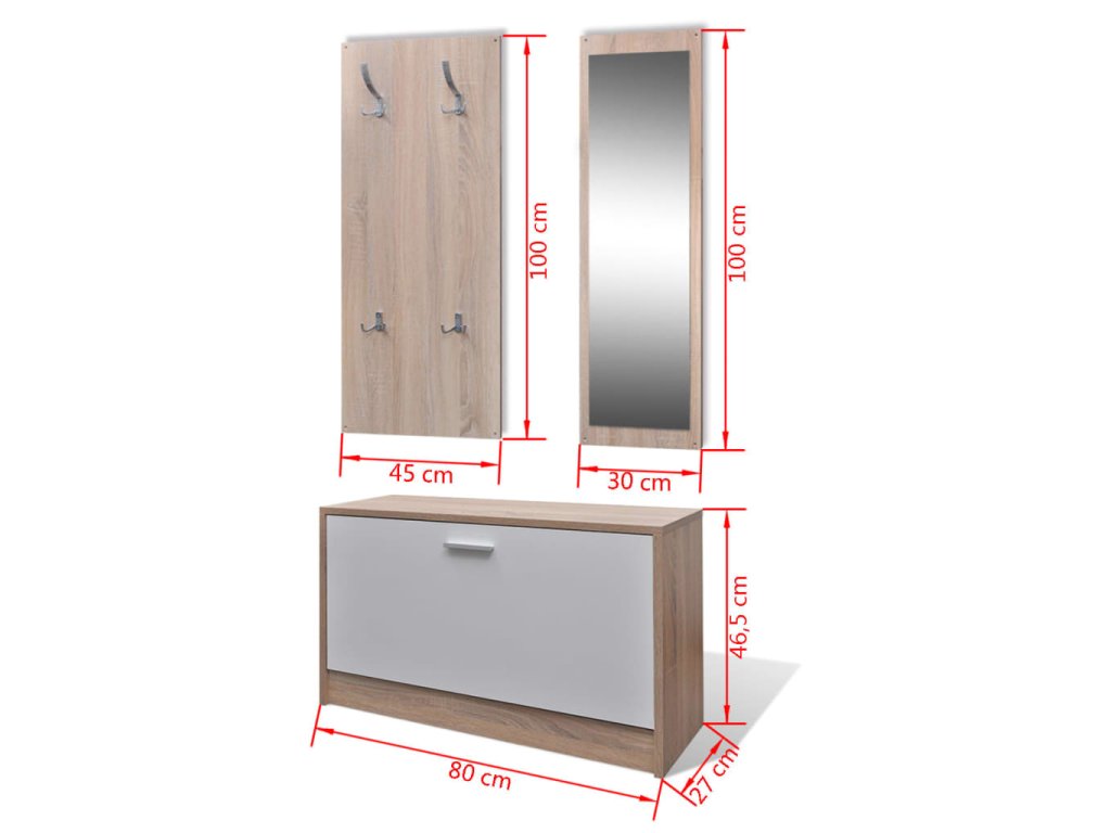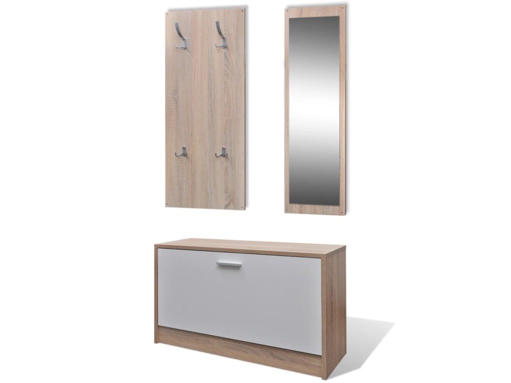 - Sada 3 v 1: Skrinka na topánky, zrkadlo, vešiak na kabáty