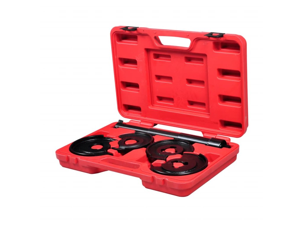 Tento teleskopický kompresor pre univerzálne použitie má špeciálne navrhnutý proti-sklzové rameno s trojrozmernou funkciou pre maximálnu priľnavosť. Táto sada umožňuje odstrániť a nahradiť vinuté pružiny bez demontáže nápravy, a tým šetrí drahocenný čas a peniaze. Vhodná pre použitie na multi-link nezávislé suspensie. Súprava je dodávaná s dvoma veľkosťami tlakových dosiek. Pokrýva väčšinu moderných vozidiel vrátane: Veľká tlaková doska:Mercedes-Benz W123, W124, W202, W210 a W124 predná náprava, W129, W201, W202 zadná náprava plus nejaké Saab, Ford a Škoda; Malá tlaková doska: Mercedes-Benz W126, W140, W100, W200 a W107 predná náprava, W114, W115, W116, W123, W126, W140, W203 zadná náprava. Navyše niektoré GM, Opel, Peugeot (406, 605), Rover, Hyundai, Saab, Volvo, Volkswagen, Fiat, Mazda, Toyota, Nissan, Mitsubishi, Ford Lada.Sada sťahovákov na pružiny sa vyrába podľa vysokých štandardov kvality. Je vhodná ako pre domácich fanatikov ako aj profesionálnych užívateľov.- 2 x sady pružinové svorky1 x teleskopický kompresorMax. kapacita pružina: 1250 kgVhodnosť: priemer 80 mm -135 mmOtvorenie: 115 do 300 mmPohon: 19mm hexBox rozmery: 45 x 31 x 9,5 cm (D x Š x V)