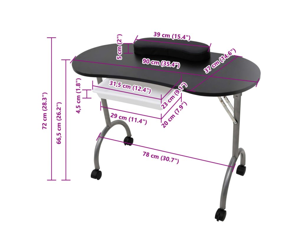 Hrubý vankúšik na zápästie, potiahnutý umelou kožou, udrží vašu ruku v pohodlnej polohe počas manikúry. Veľká stolová doska má dostatok priestoru na položenie rúk a všetkých pomôcok na manikúru. Vstavaná zásuvka vám umožňuje uložiť malé nástroje, ako sú nožnice na nechty, laky na nechty, pilníky na nechty atď.