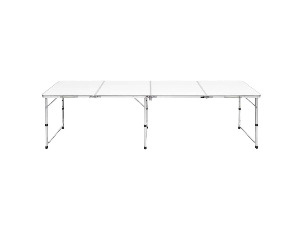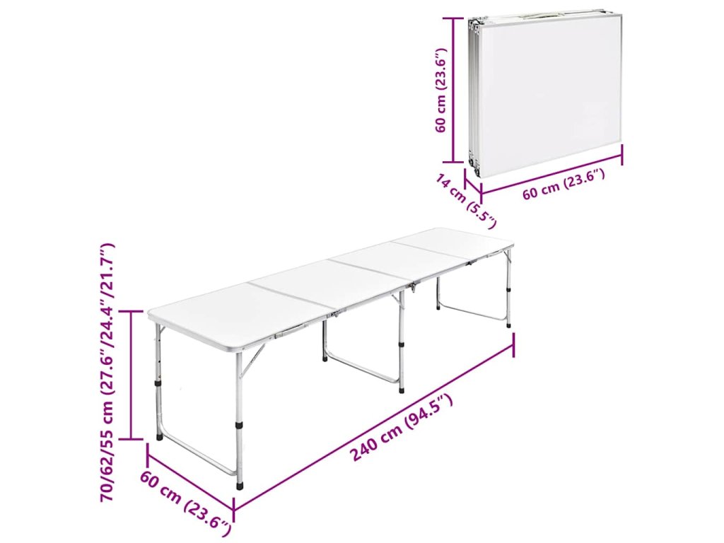 Tento skladací kempingový stôl s praktickou rúčkou na prenášanie je vhodný do kuchyne, na terasy, do záhrad, na pikniky a výlety. Jeho výška sa dá nastaviť na 55 cm, 62 cm a 70 cm.