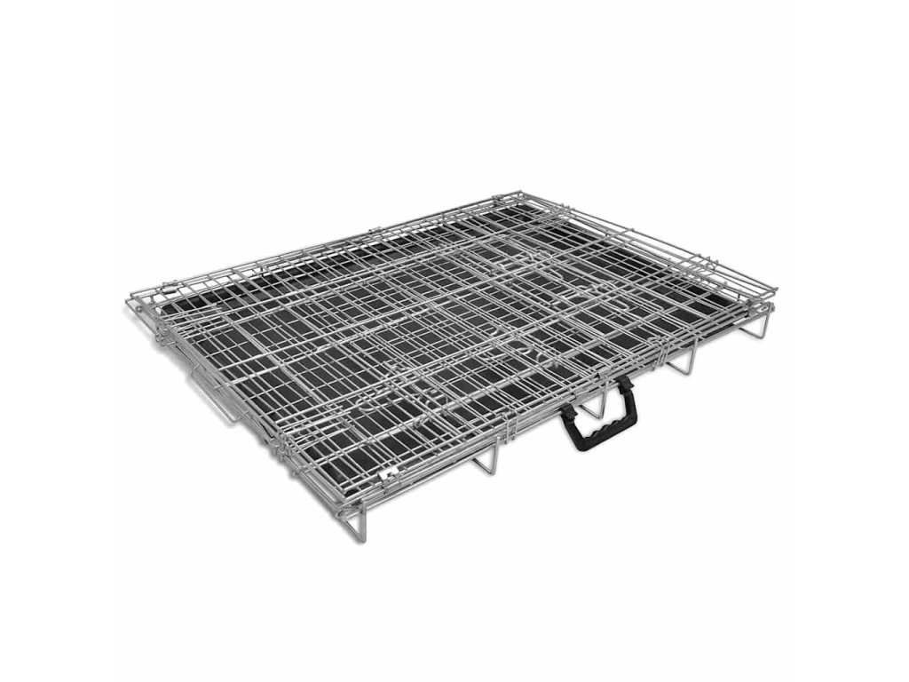 Skladacia klietka má jednoduchý vzhľad a trvácny pozinkovaný povrch, ktorý je odolný voči hrdzi. Pevná konštrrukcia sa postará o to, aby vaše domáce zviera bolo vždy v bezpečí. Vďaka kompaktnej veľkosti ju môžete umiestniť na terasu, do dvora alebo do garáže.