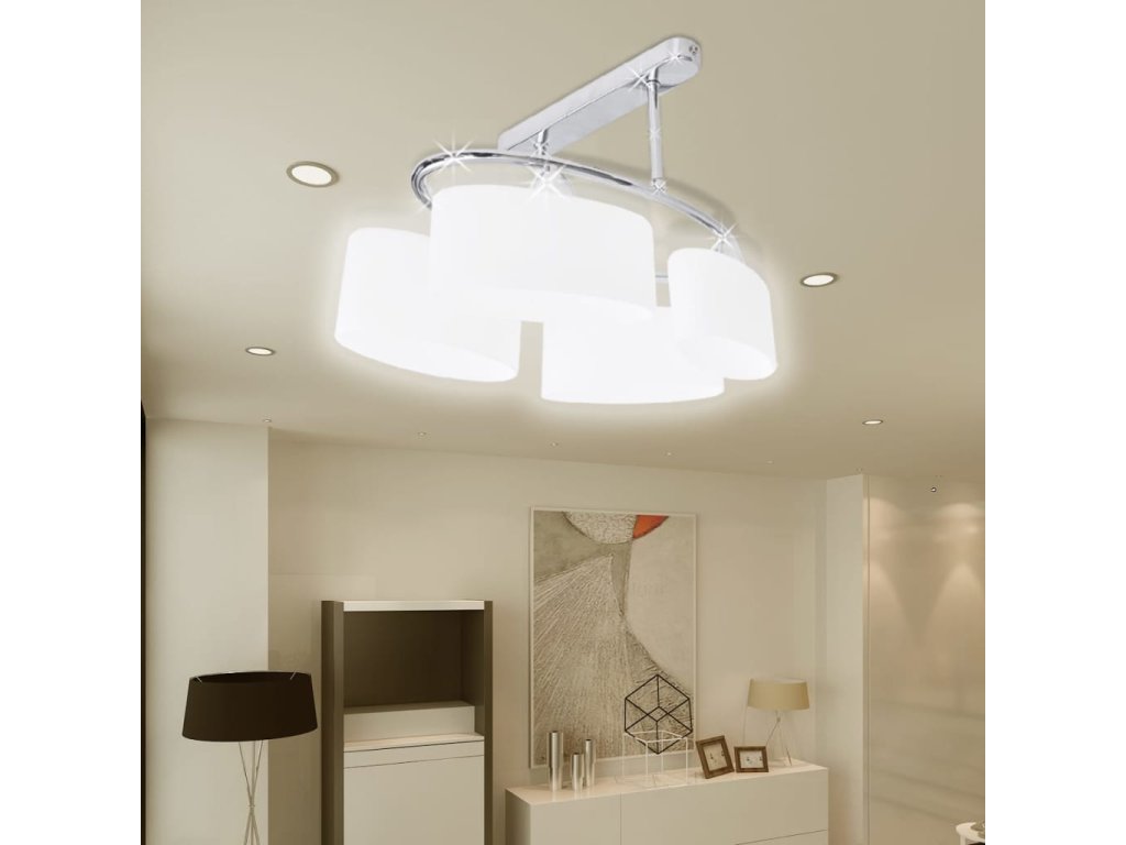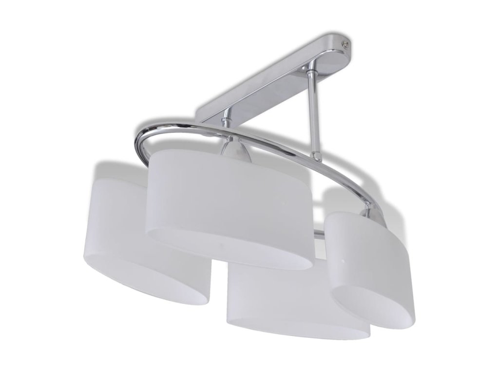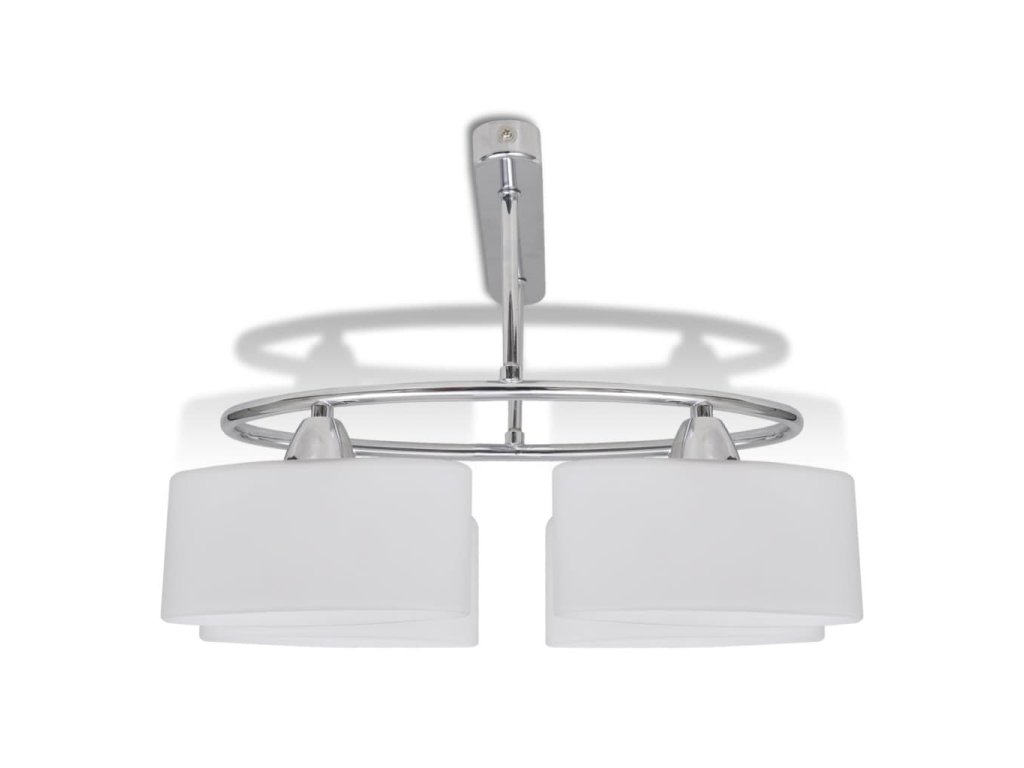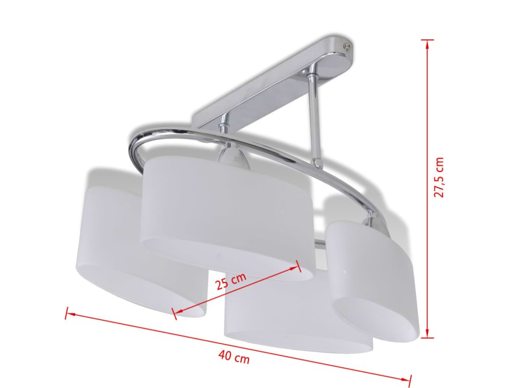 Toto jedinečné stropné svietidlo, so štyrmi sklenenými tienidlami, má moderný dizajn. Chrómové povrchové úpravy dávajú tejto lampe moderný štýl - ideálne pre obývaciu izbu alebo spálne s akýmkoľvek štýlom.