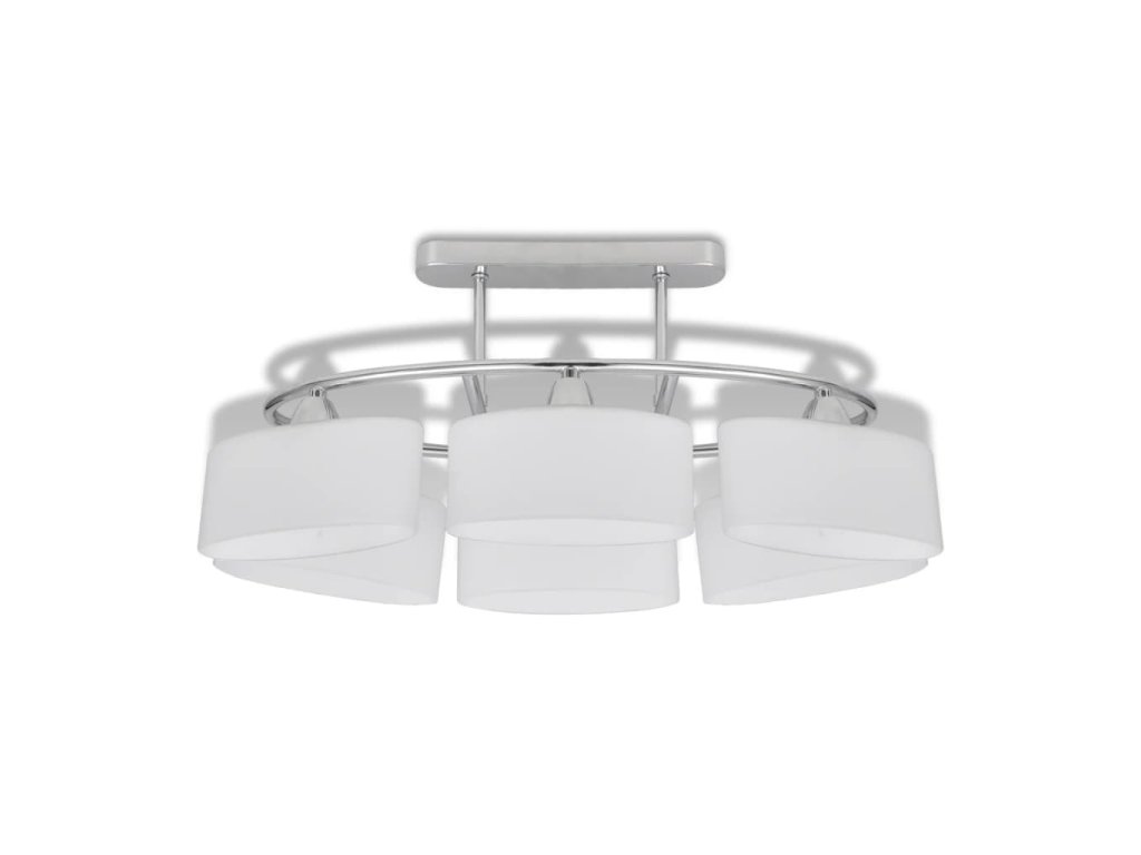 Toto jedinečné stropné svietidlo, so šiestimi sklenenými tienidlami, má moderný dizajn. Chrómové povrchové úpravy dávajú tejto lampe moderný štýl - ideálne pre obývaciu izbu alebo spálne s akýmkoľvek štýlom.
