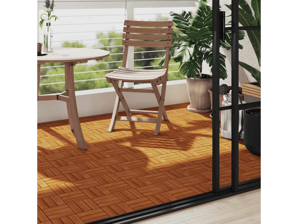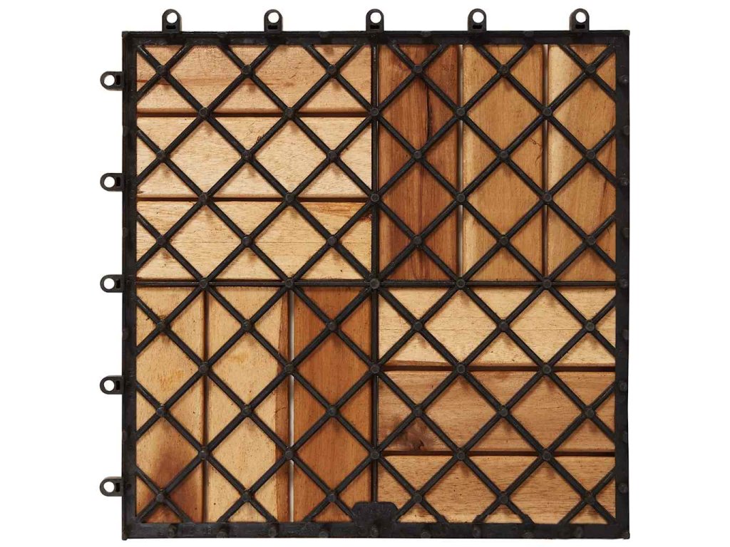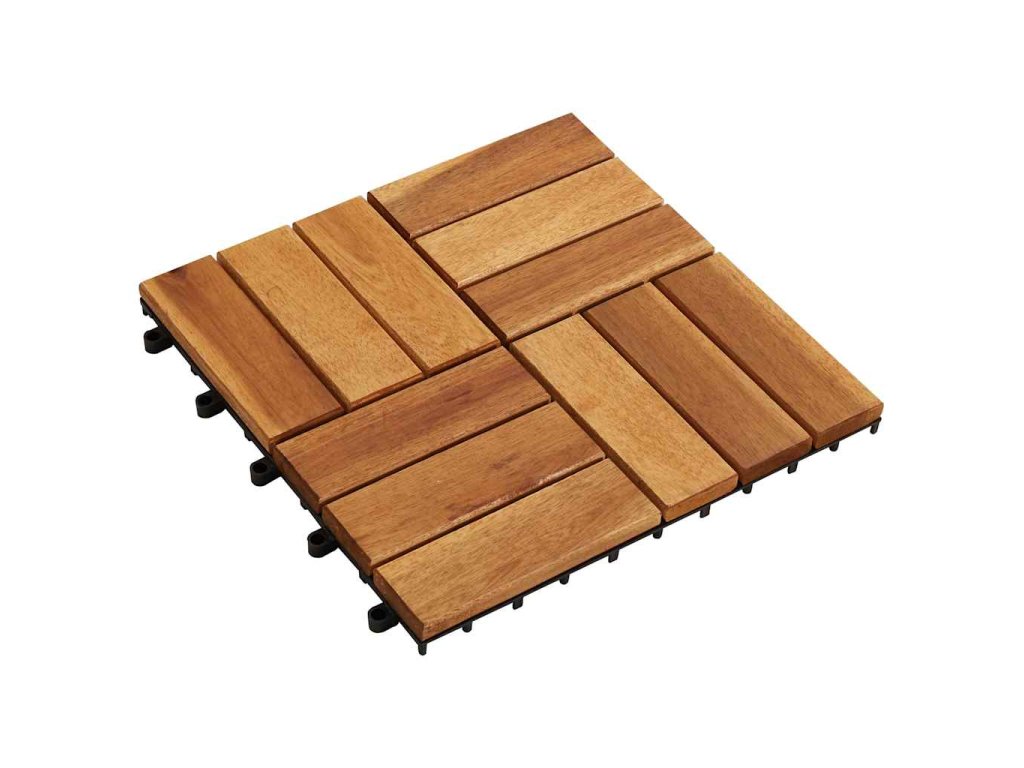 - Materiál dlaždíc: Masívne akáciové drevo (lakované)