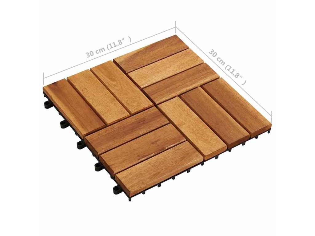 Dlaždice sú vyrobené z kvalitného akáciového dreva, ktoré je veľmi trvácne tropické drevo odolné voči poveternostným vplyvom. Dlaždice sa dajú do seba zasúvať a tak je ich možné jednoducho a tesne spojiť, aby vytvorili pevnú plochu na chodenie.