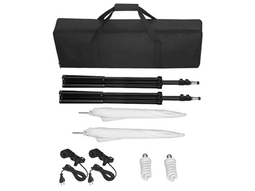 - Súprava pozostáva z: 2 statívov, 2 dáždnikov, 2 lámp s denným svetlom a praktickej tašky