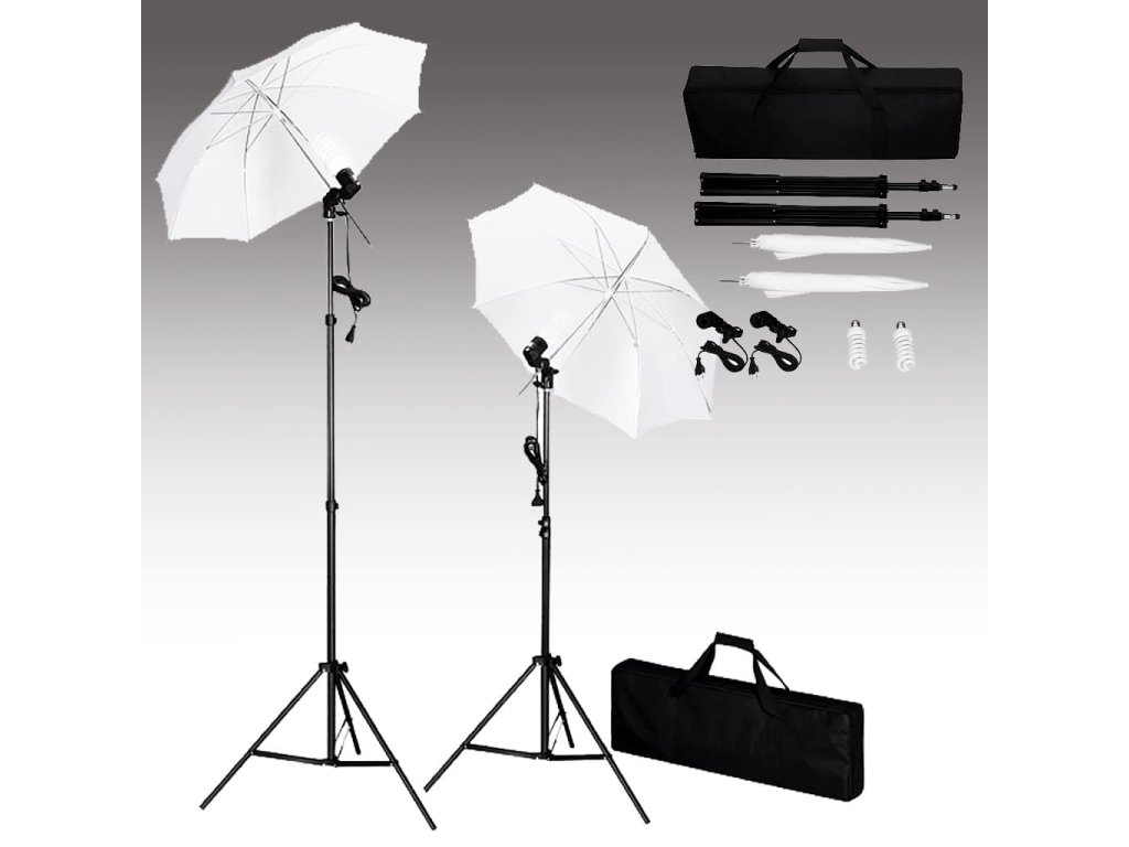 Táto súprava štúdiového osvetlenia je vhodná do štúdia aj do terénu. Keď použijete lampy s denným svetlom s farebnou teplotou 5500 kelvinov, podarí sa vám fotený predmet alebo osobu zachytiť tak, že konečný výsledok bude pôsobiť prirodzene. Svetelný výkon dvoch lámp je 100 wattov a zabezpečujú ho len 24-wattové energeticky úsporné žiarovky. Súprava štúdiového osvetlenia je vhodná na fotenie analógových aj digitálnych fotografií. Lampa sa dá pripevniť na statív, a tak ju môžete umiestniť do výsky až 230 cm. Dva biele dáždniky poskytujú jemné osvetlenie, ktoré zabráni tomu, aby sa na fotkách vytvárali nepekné tiene. Celé vybavenie sa dá rýchlo a ľahko poskladať a zmestí sa do praktickej tašky, v ktorej si ho so sebou môžete zobrať kamkoľvek.