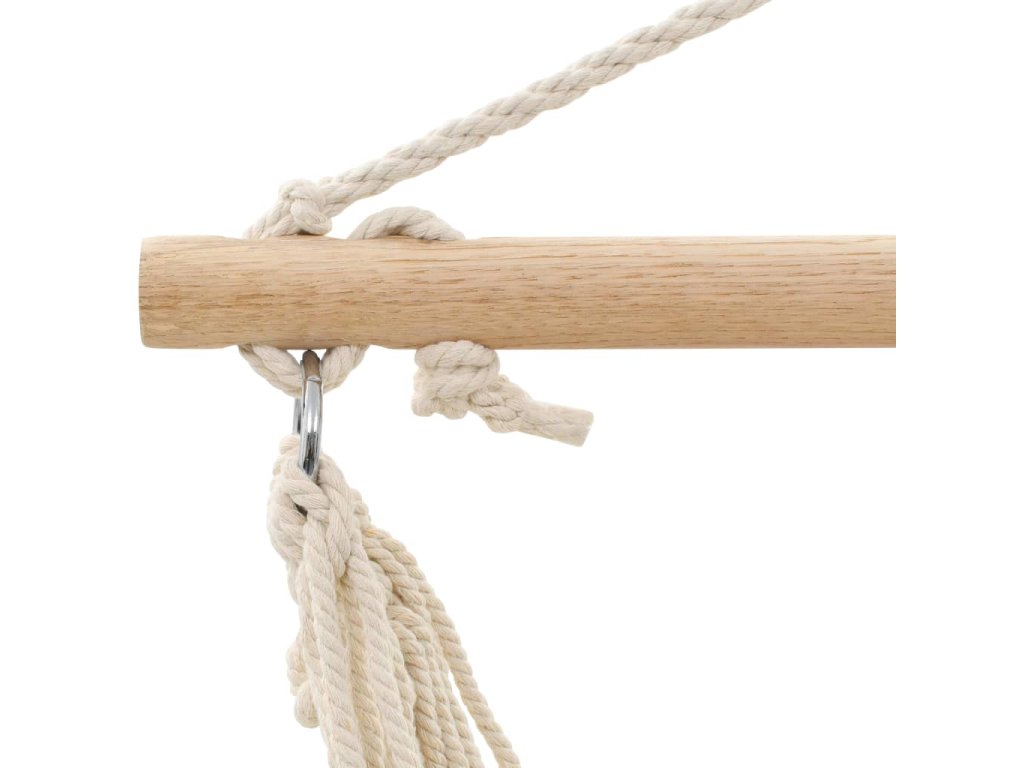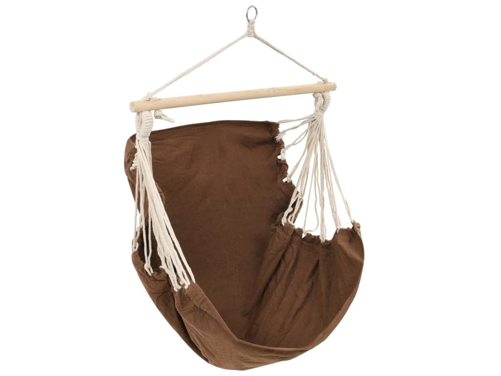 Hojdacie kreslo je vyrobené z odolnej a silnej polyesterovej tkaniny, ktorá je vyplnená bavlnou. Je pevne uchytené na širokej a robustnej tyči z tvrdého dreva. Udrží až 110 kg váhyMá veľký povrch až 185 x 125 cm, na ktorom môžete pohodlne sedieť