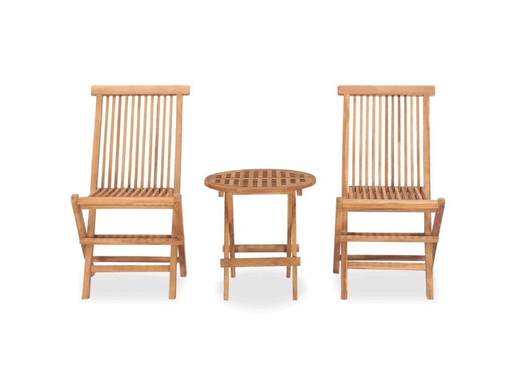 Pikniková súprava je vyhotovená z mimoriadne trvácneho tvrdého tíkového dreva, ktoré bolo umelo vysušené v sušiarni a jeho povrch bol následne jemne obrúsený, aby získal hladký vzhľad. Tíkové drevo sa vyznačuje výnimočnou pevnosťou a odolnosťou voči poveternostným vplyvom, a tak predstavuje jeden z najvhodnejších materiálov na výrobu záhradného nábytku spomedzi všetkých ostatných druhov dreva. Ak si chcete zaobstarať záhradný nábytok, ktorý vám bude slúžiť dlhé roky, tíkové drevo je pre vás ako stvorené. Keď sa stôl a stoličky nepoužívajú, stačí ich jednoducho poskladať a odložiť.