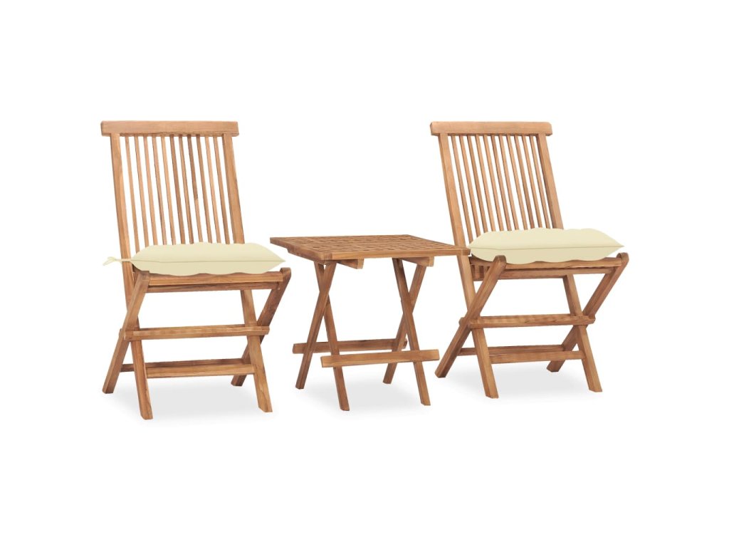 vidalXL 3-dielna skladacia vonkajšia jedálenská súprava s podložkami tíkový masív
